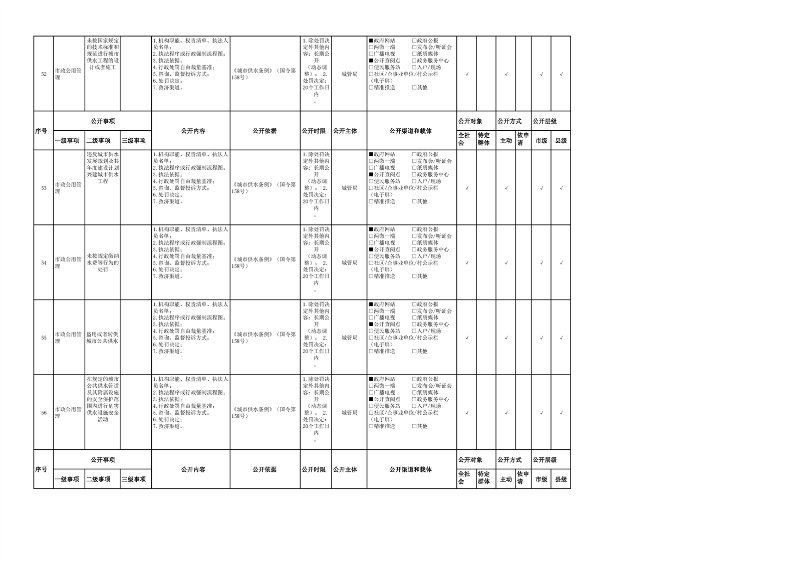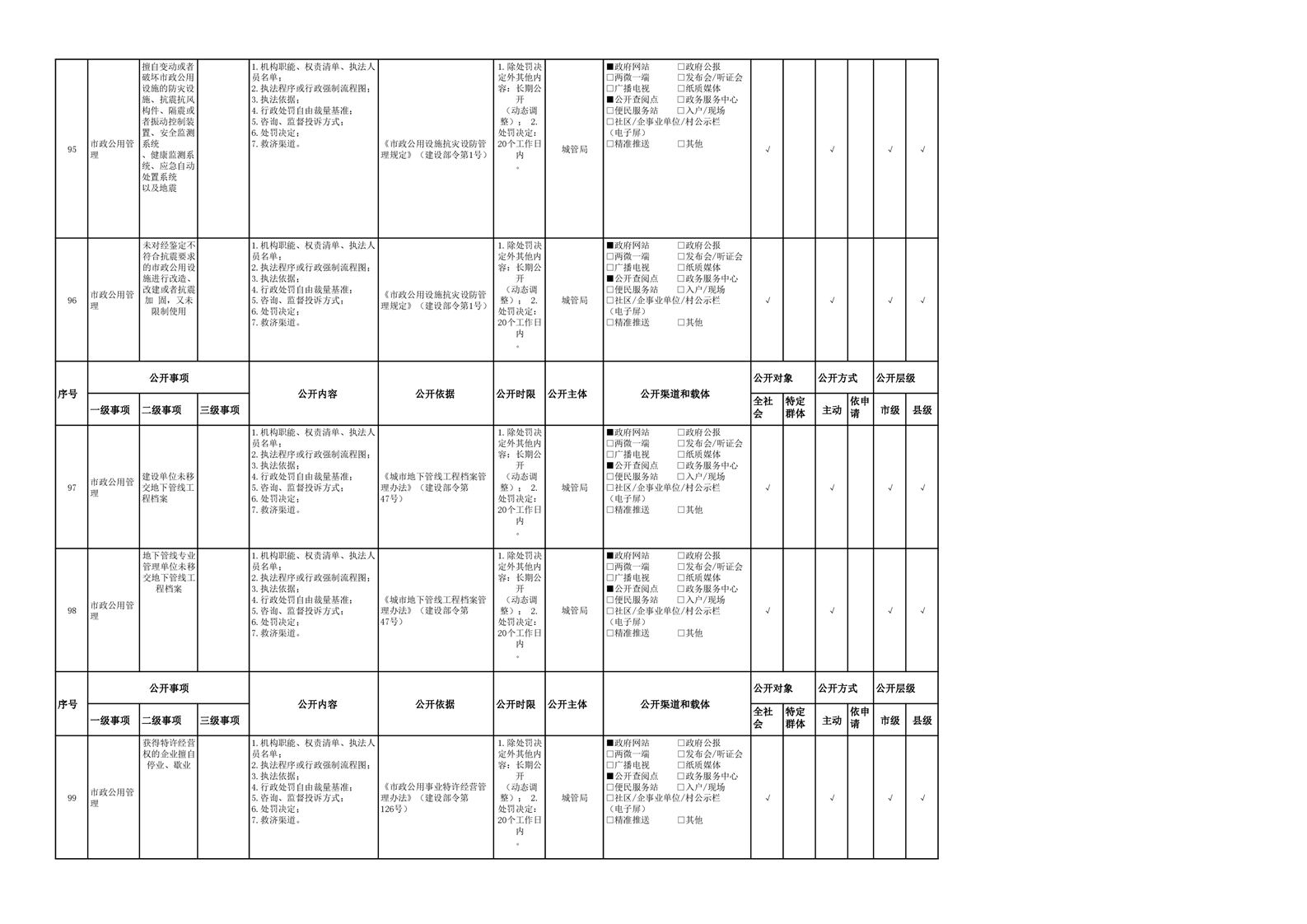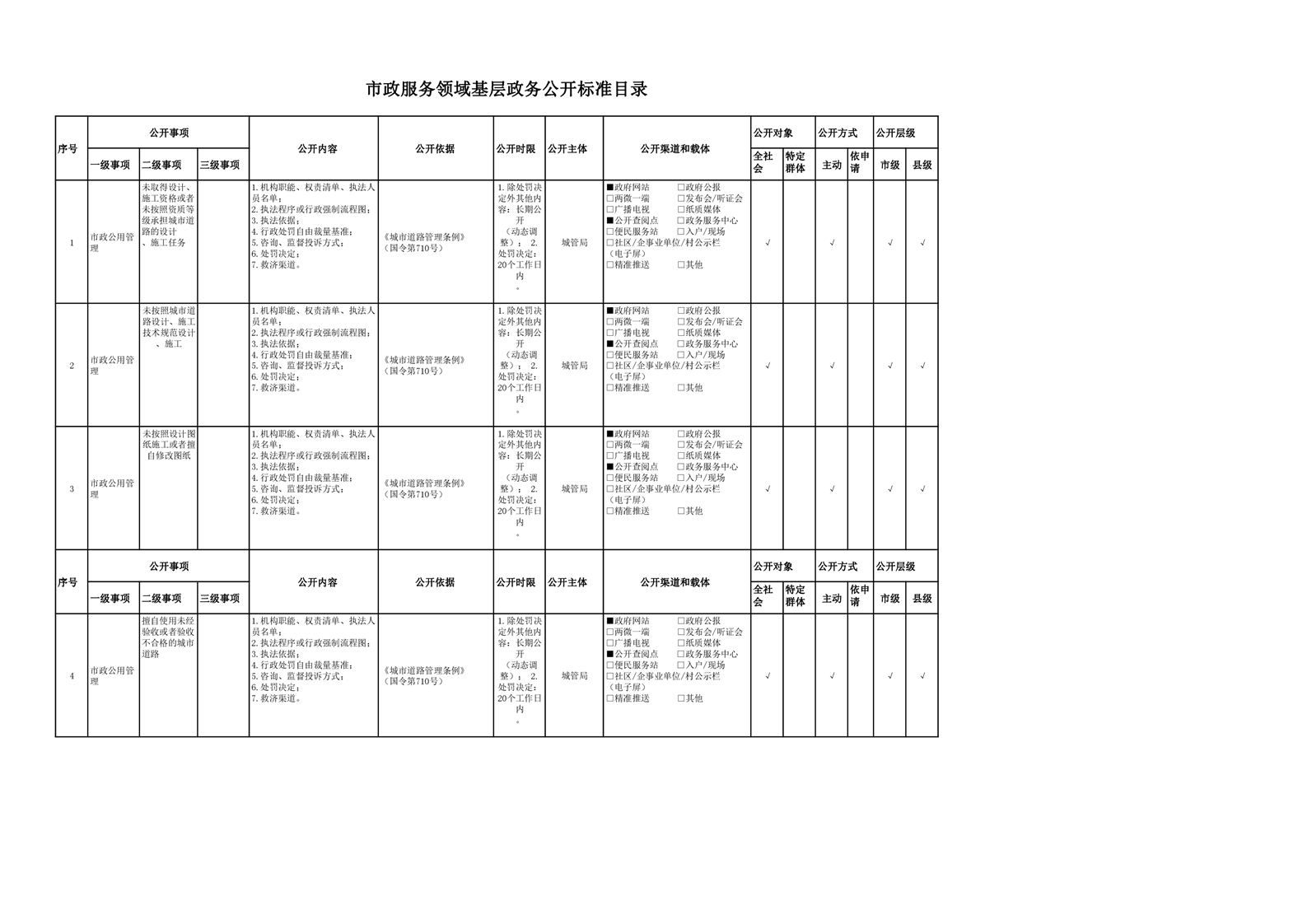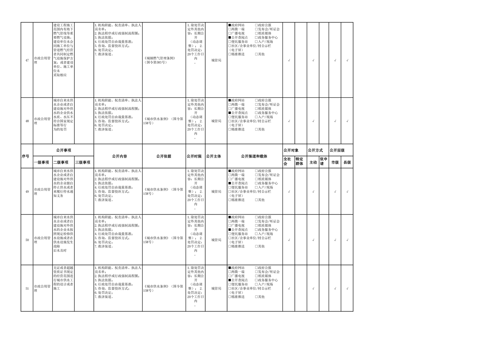 市政服务领域基层政务公开参考目录(2022年)