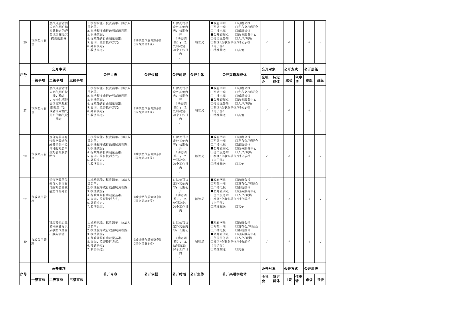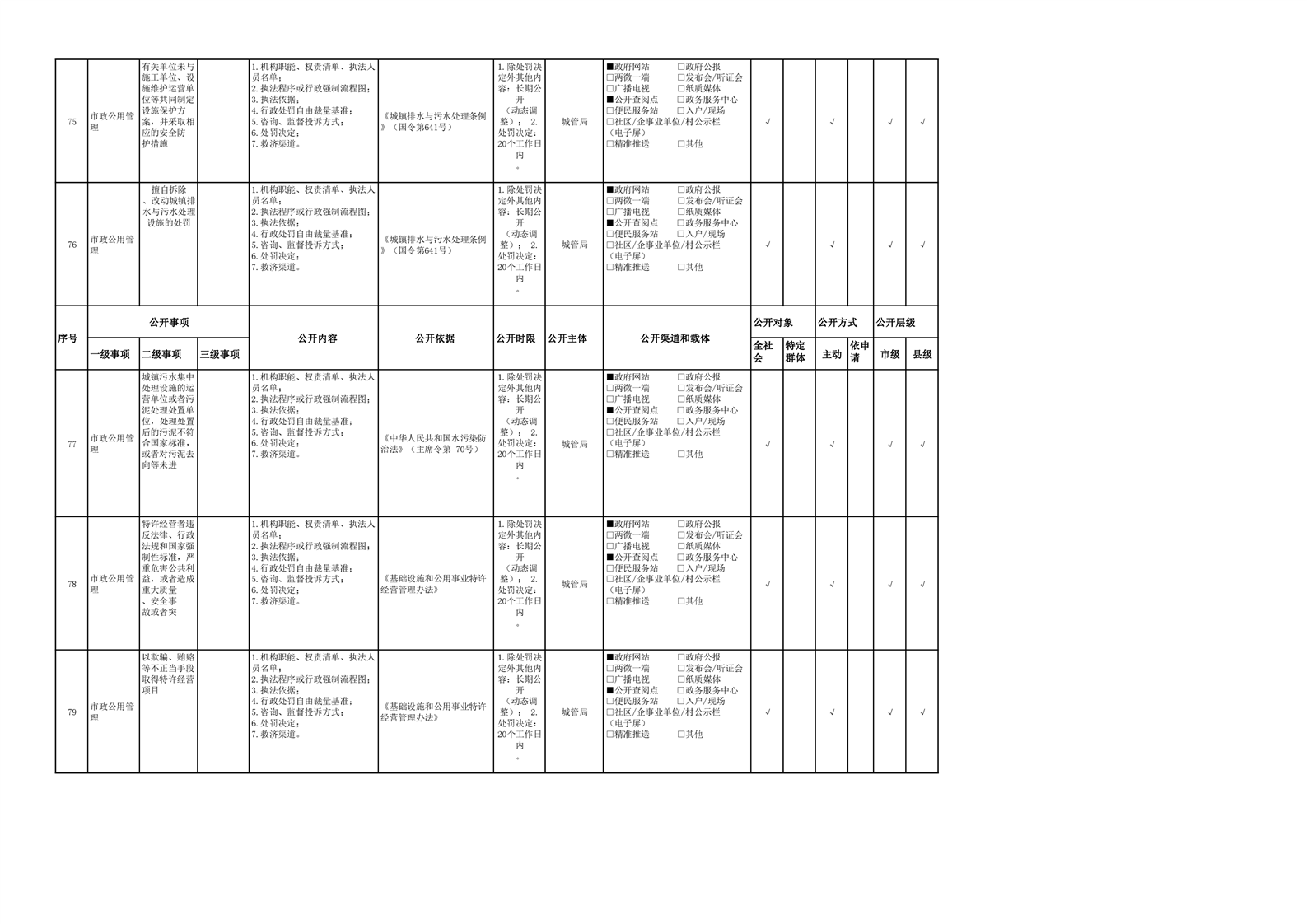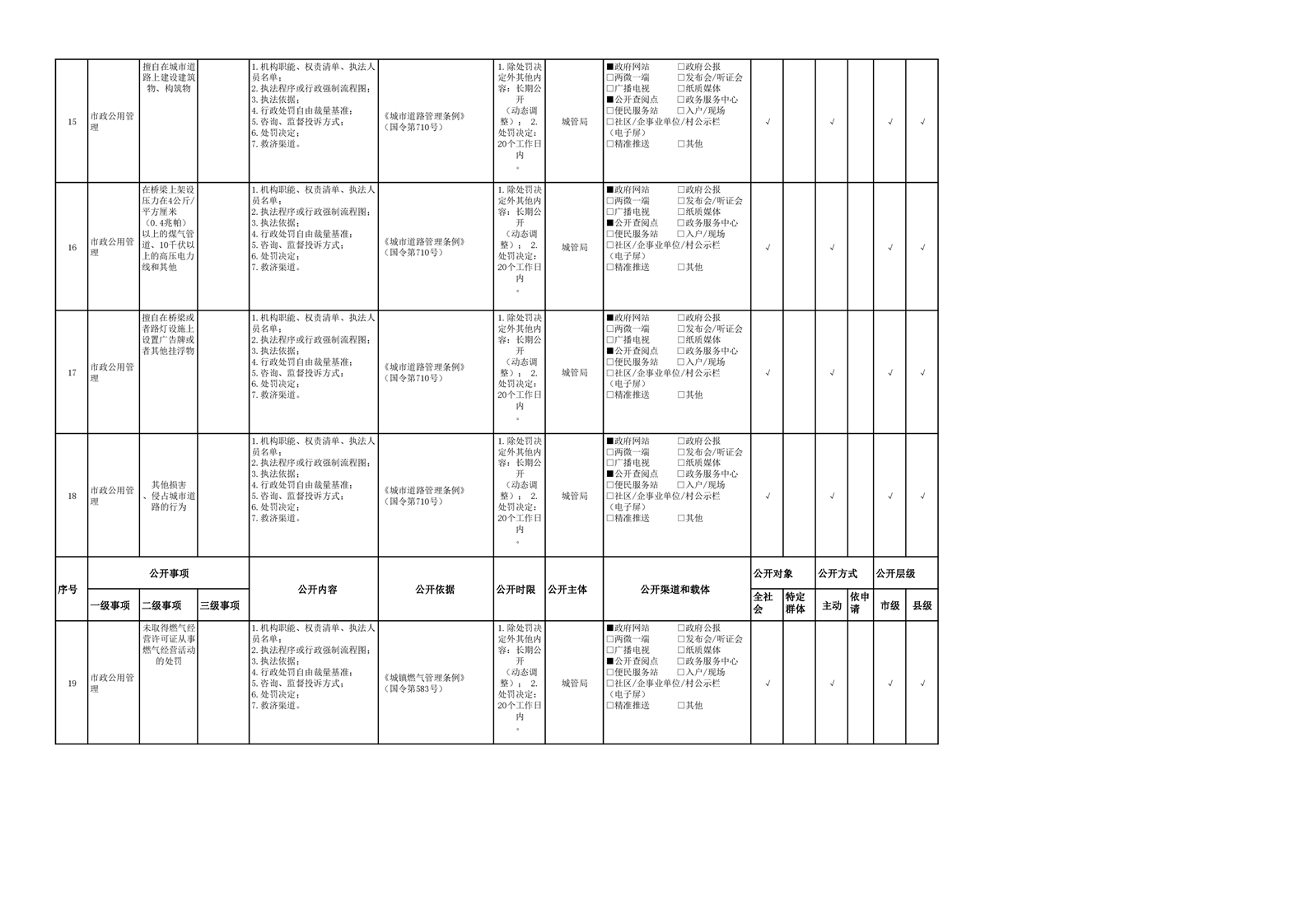 市政服务领域基层政务公开参考目录(2022年)