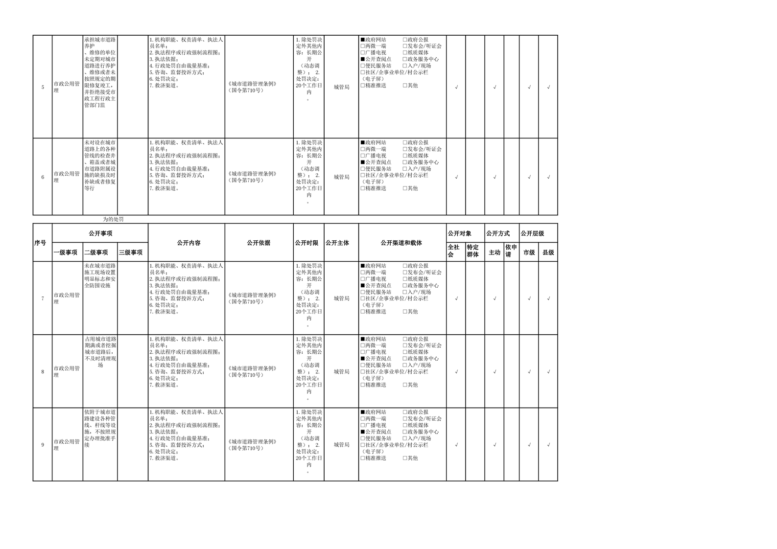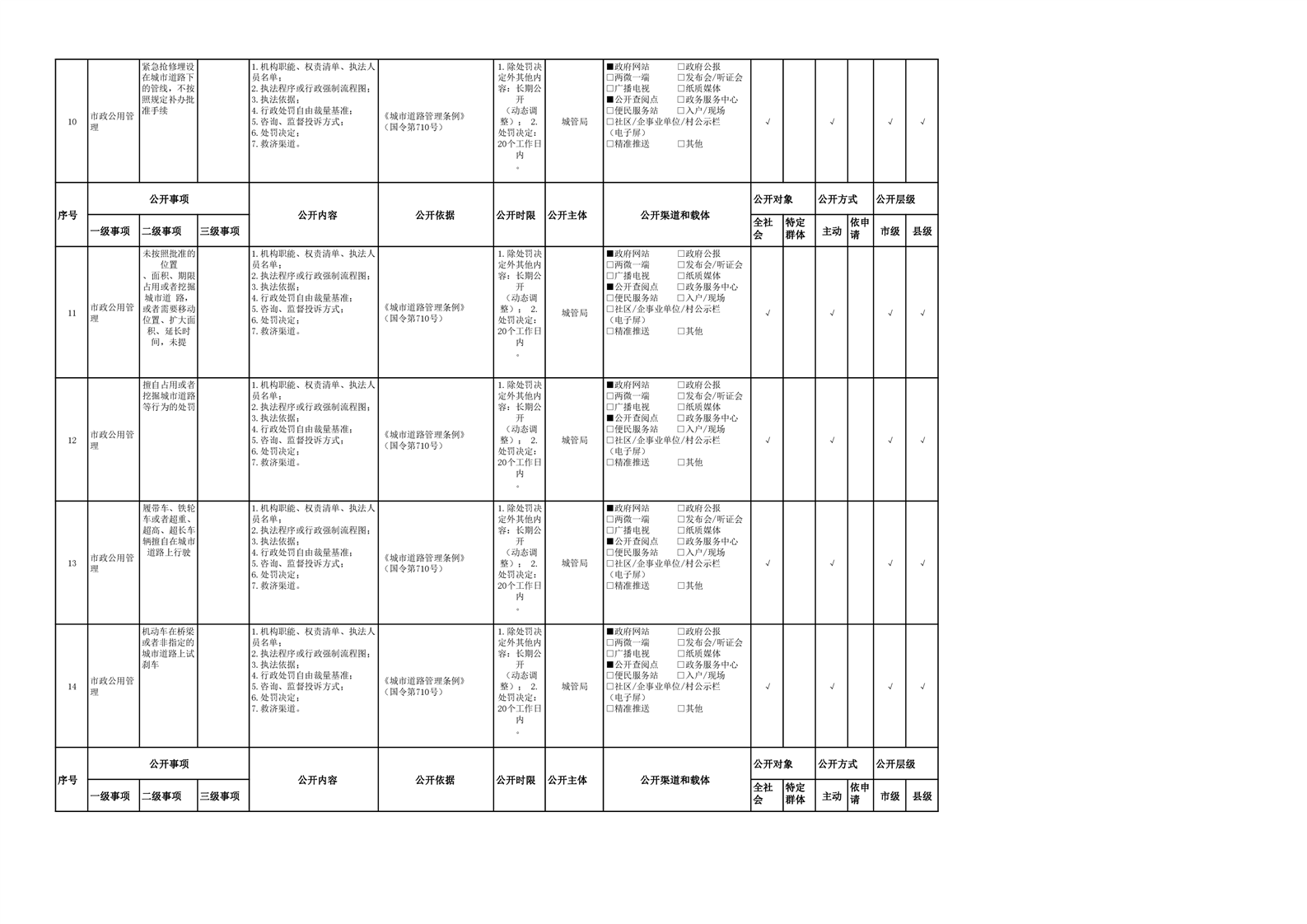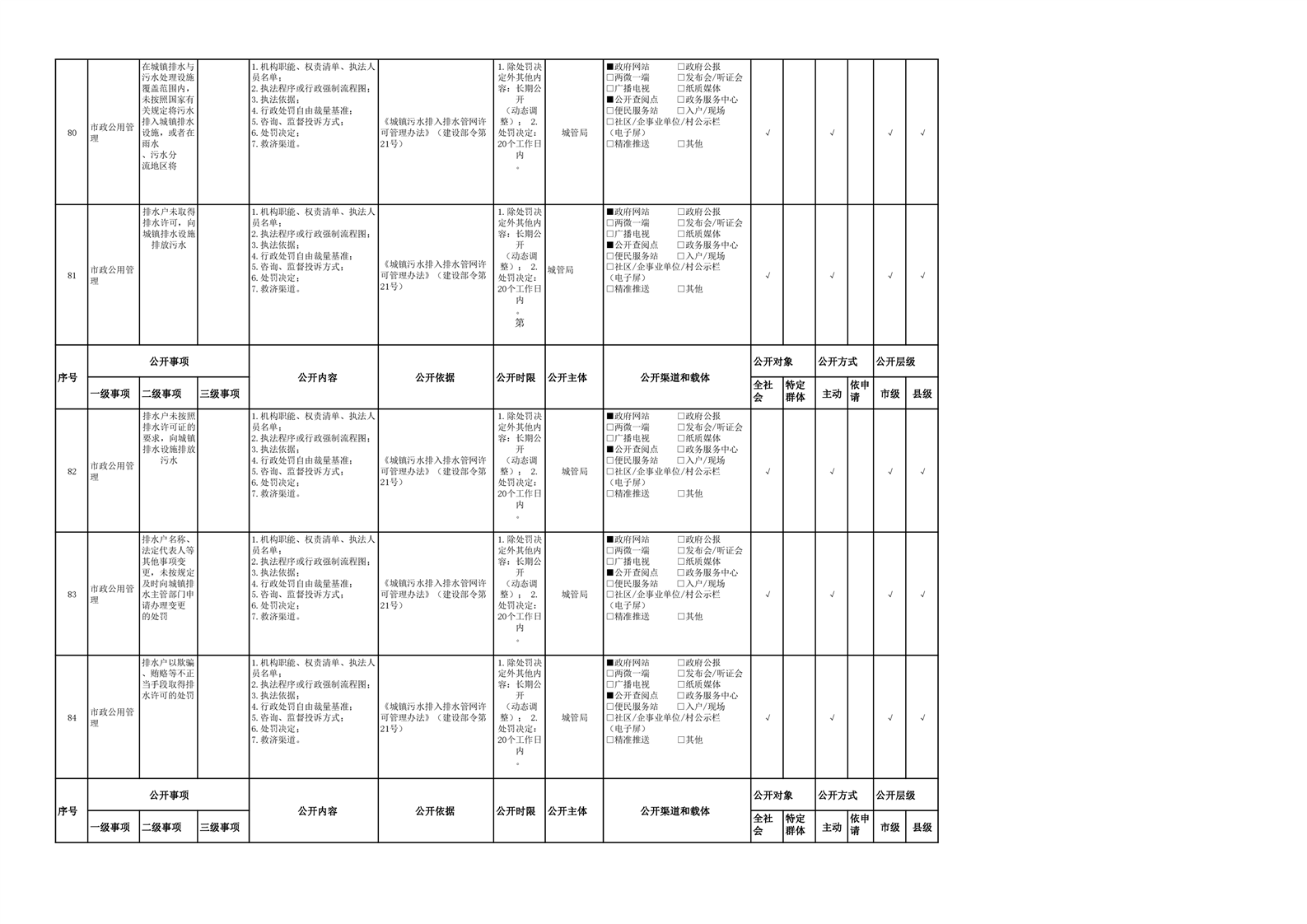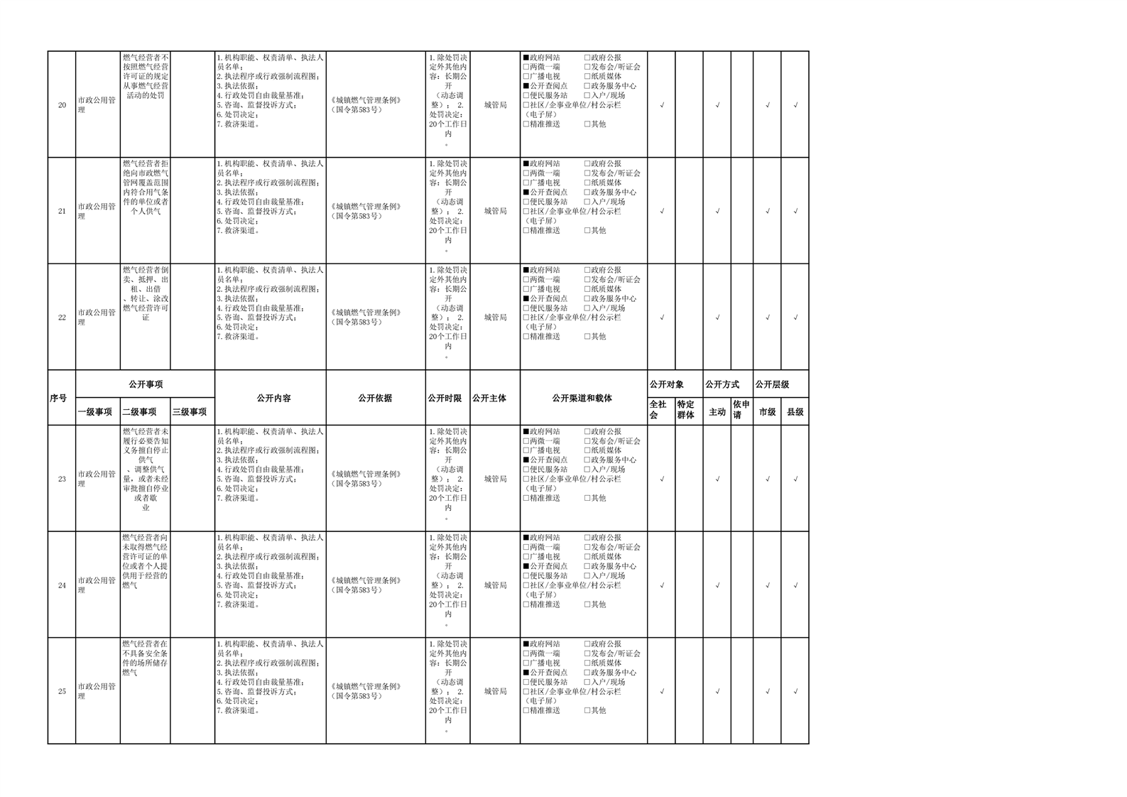 市政服务领域基层政务公开参考目录(2022年)