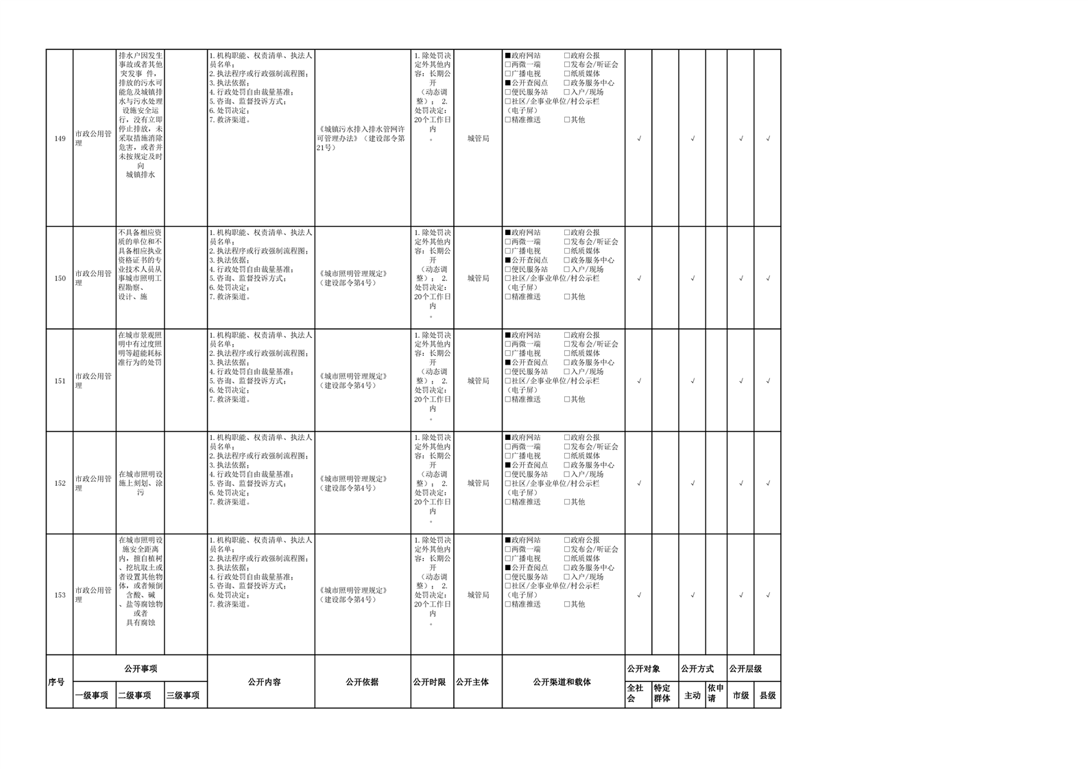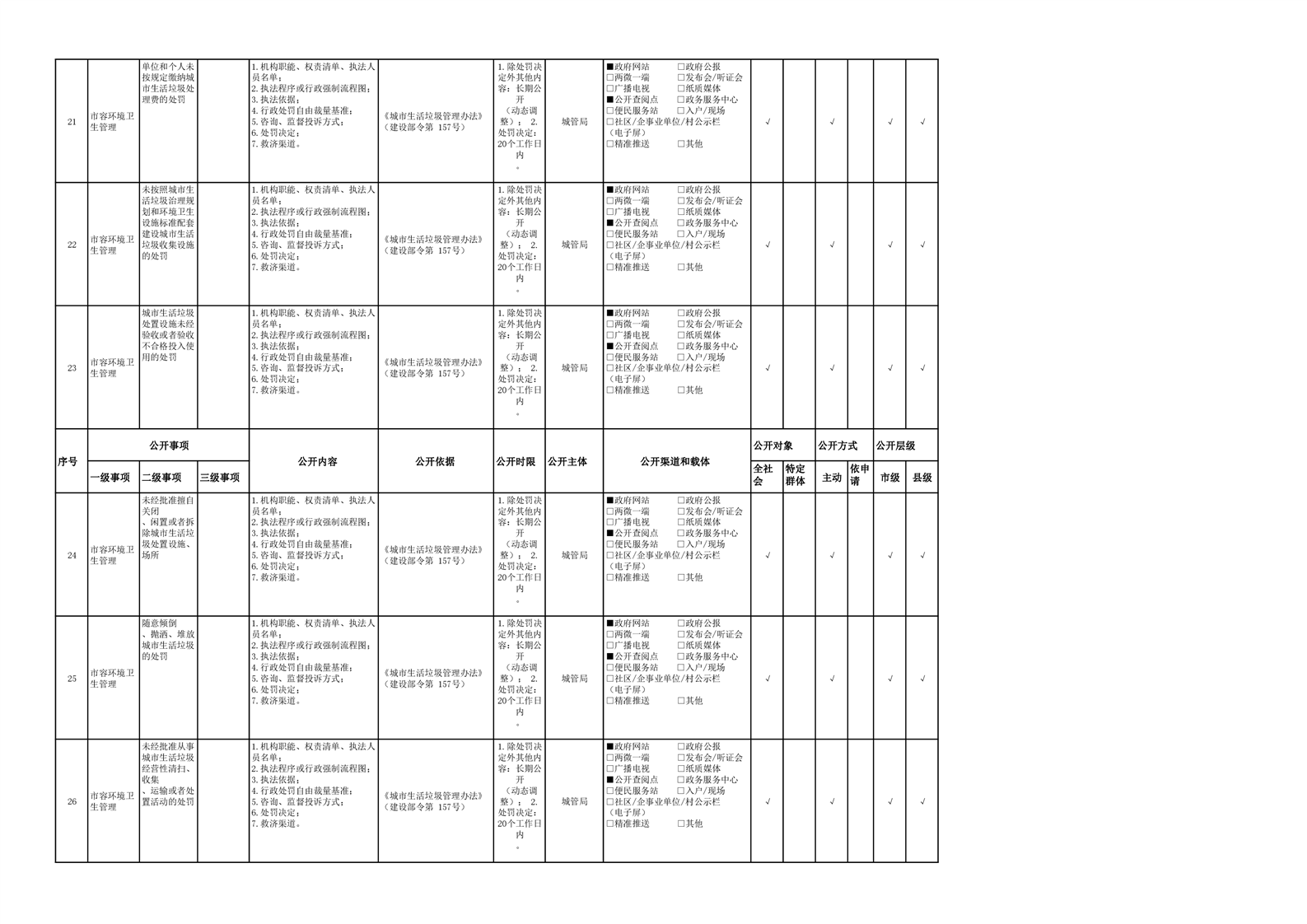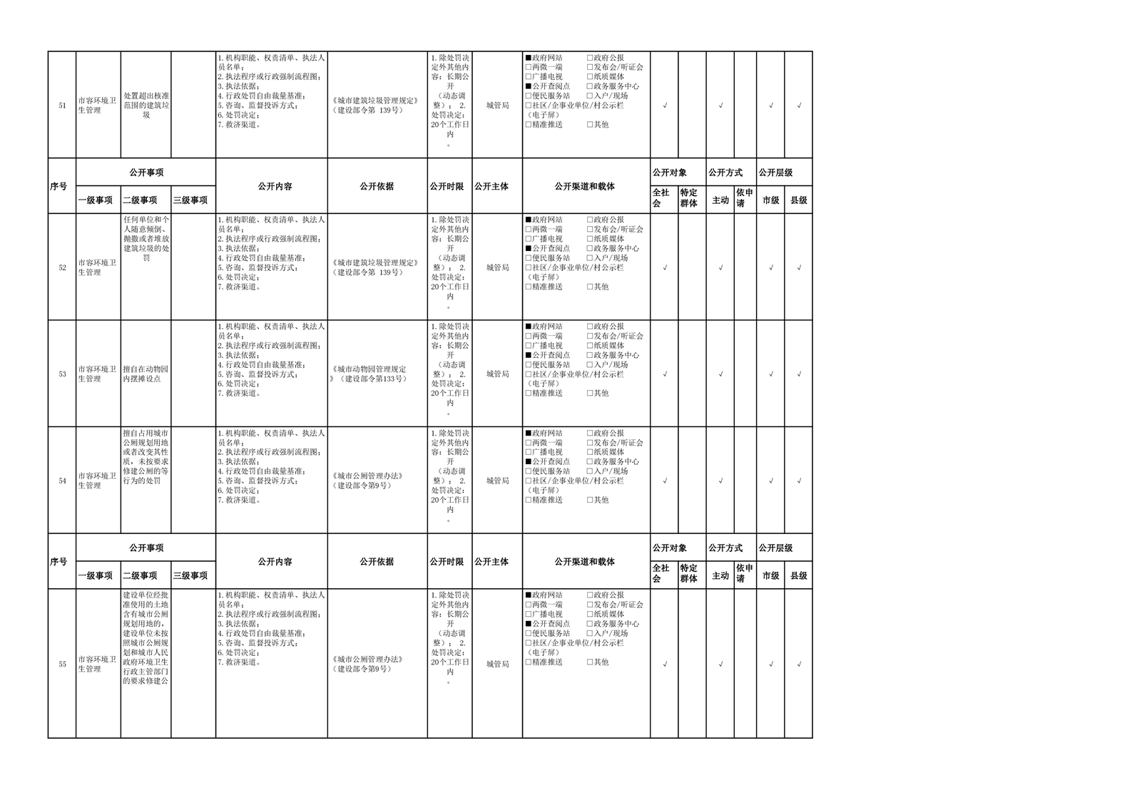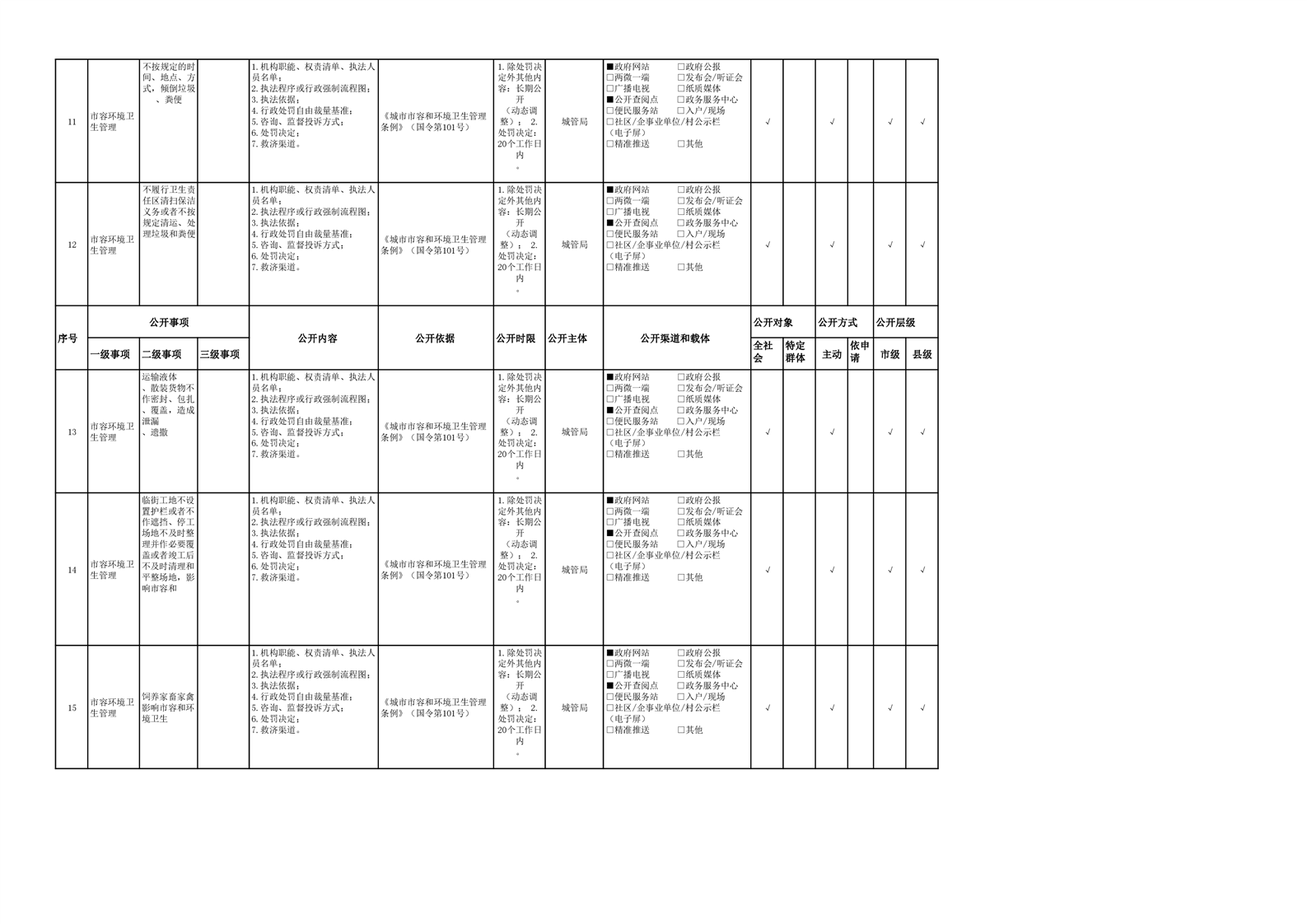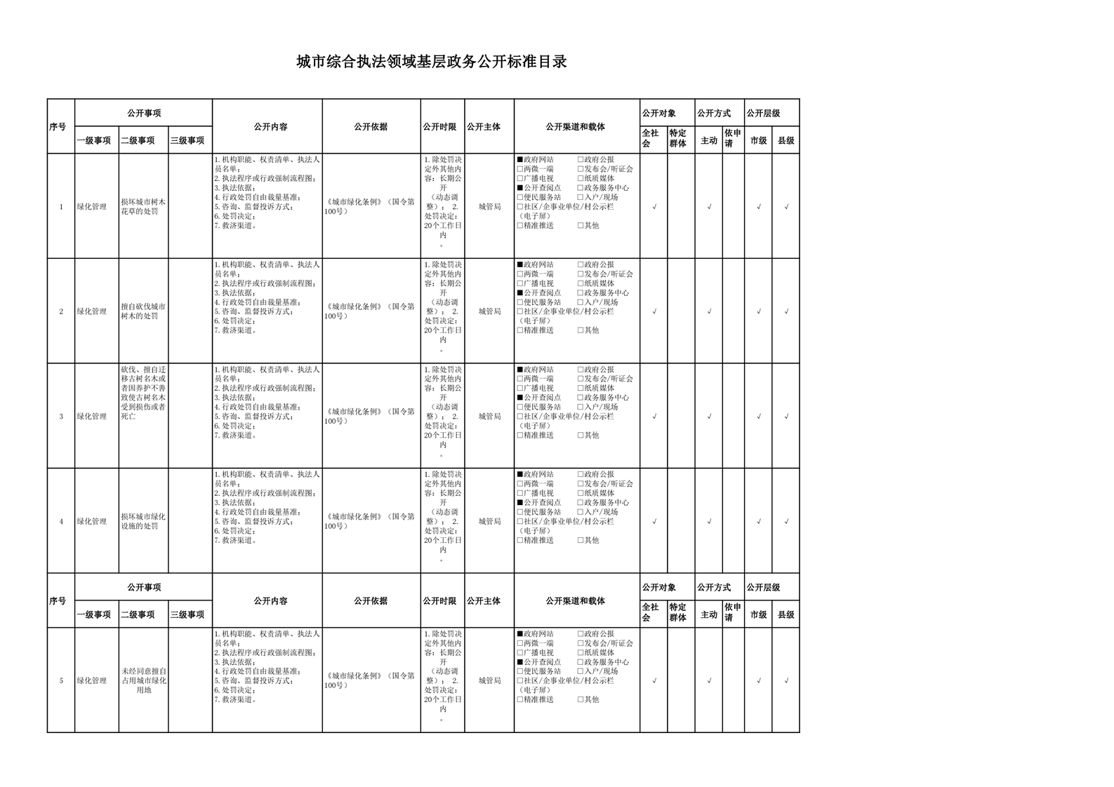 城市综合执法领域基层政务公开参考目录(2022年)