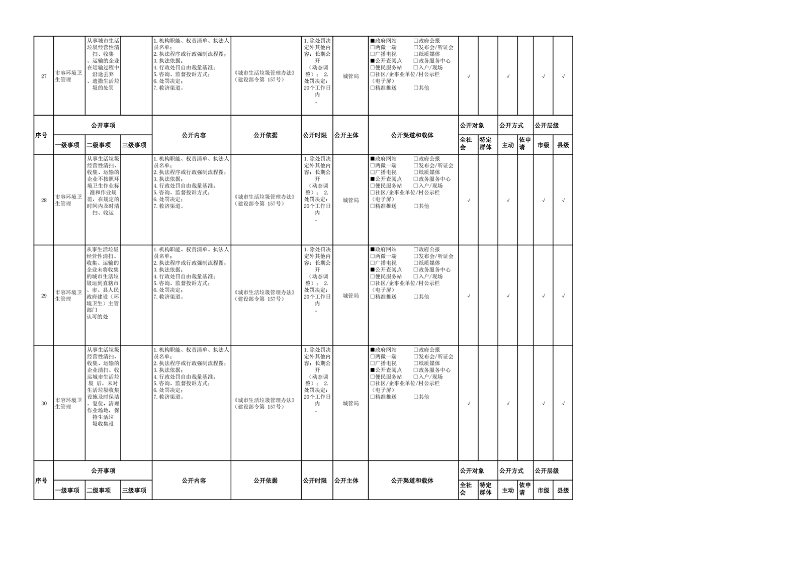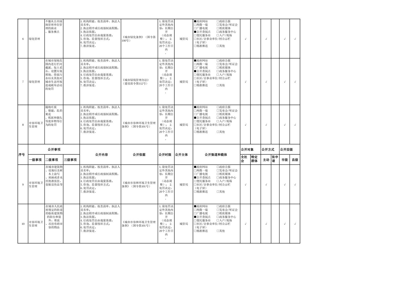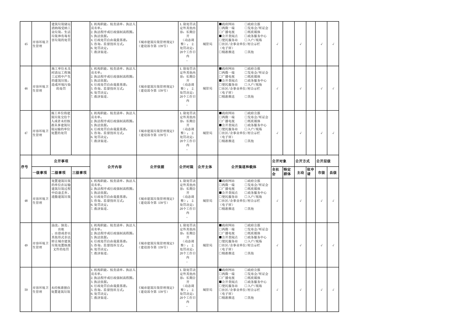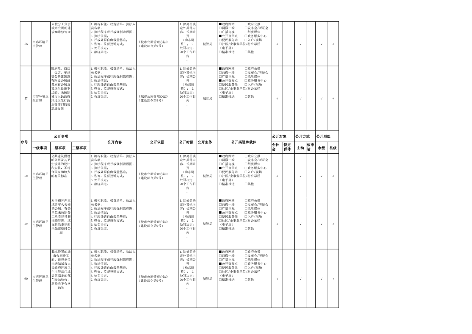 城市综合执法领域基层政务公开参考目录(2022年)
