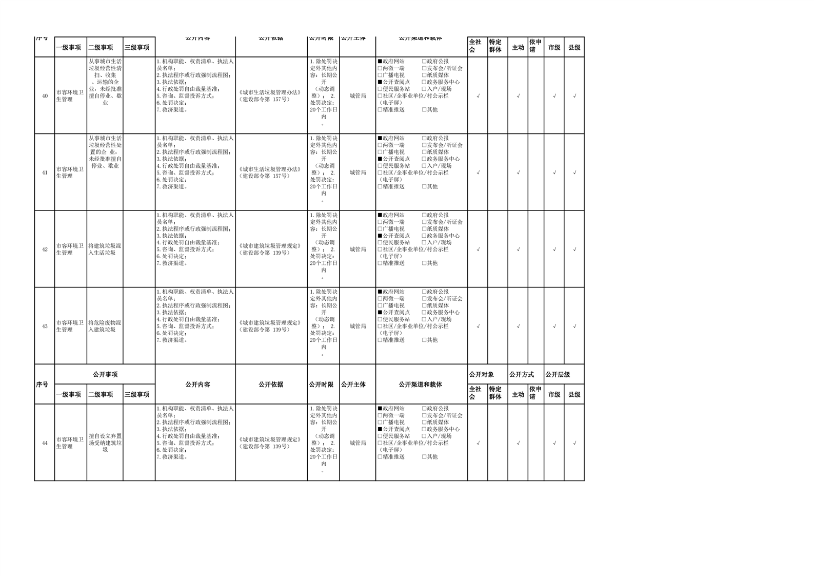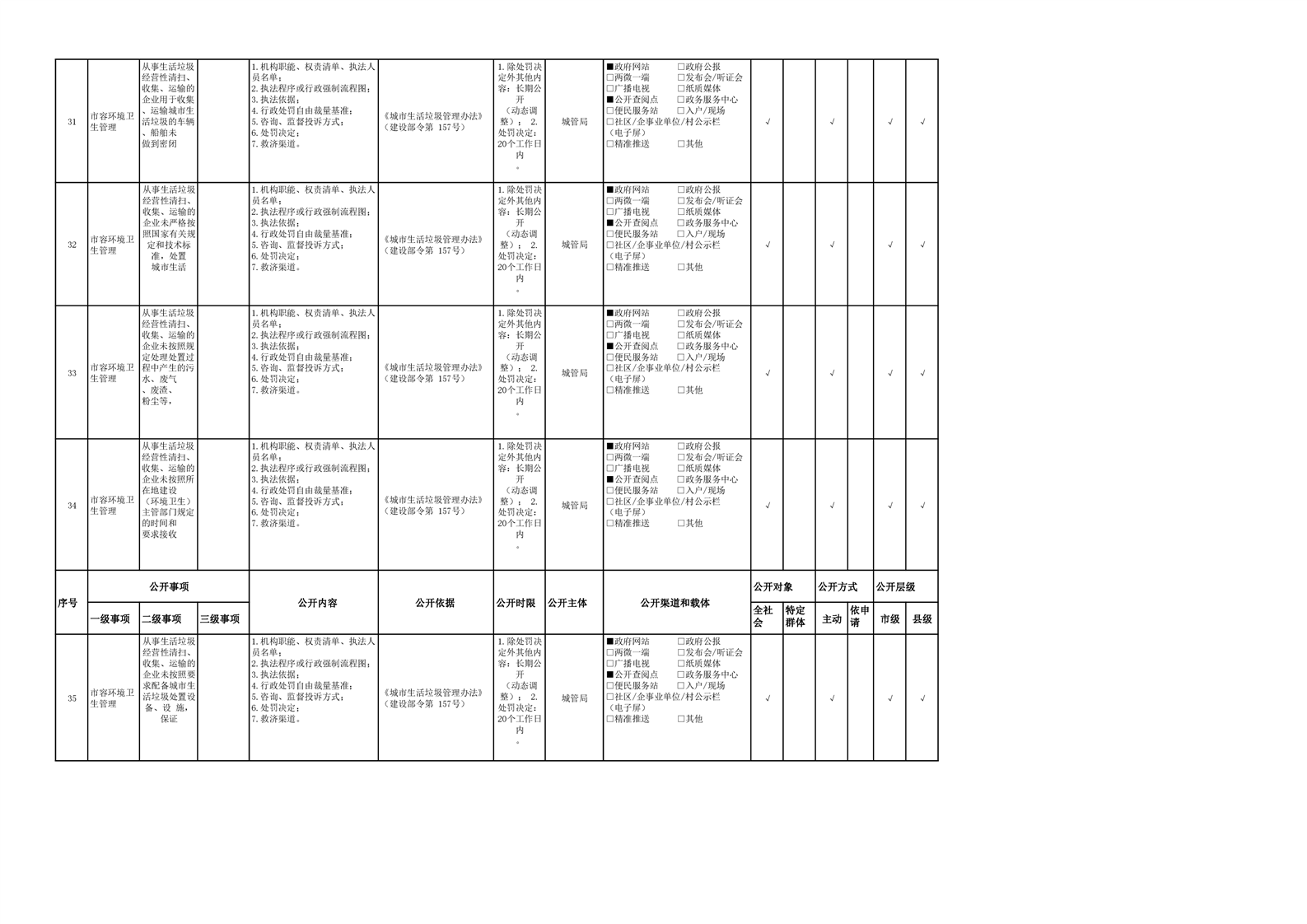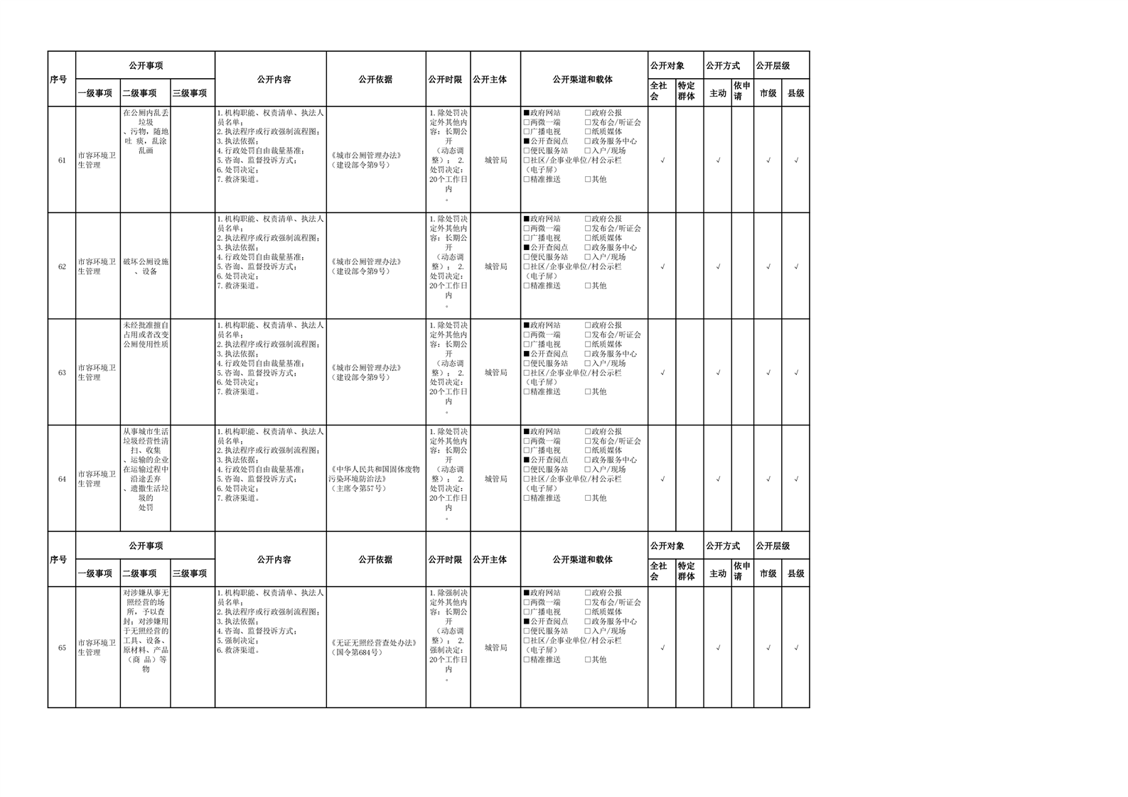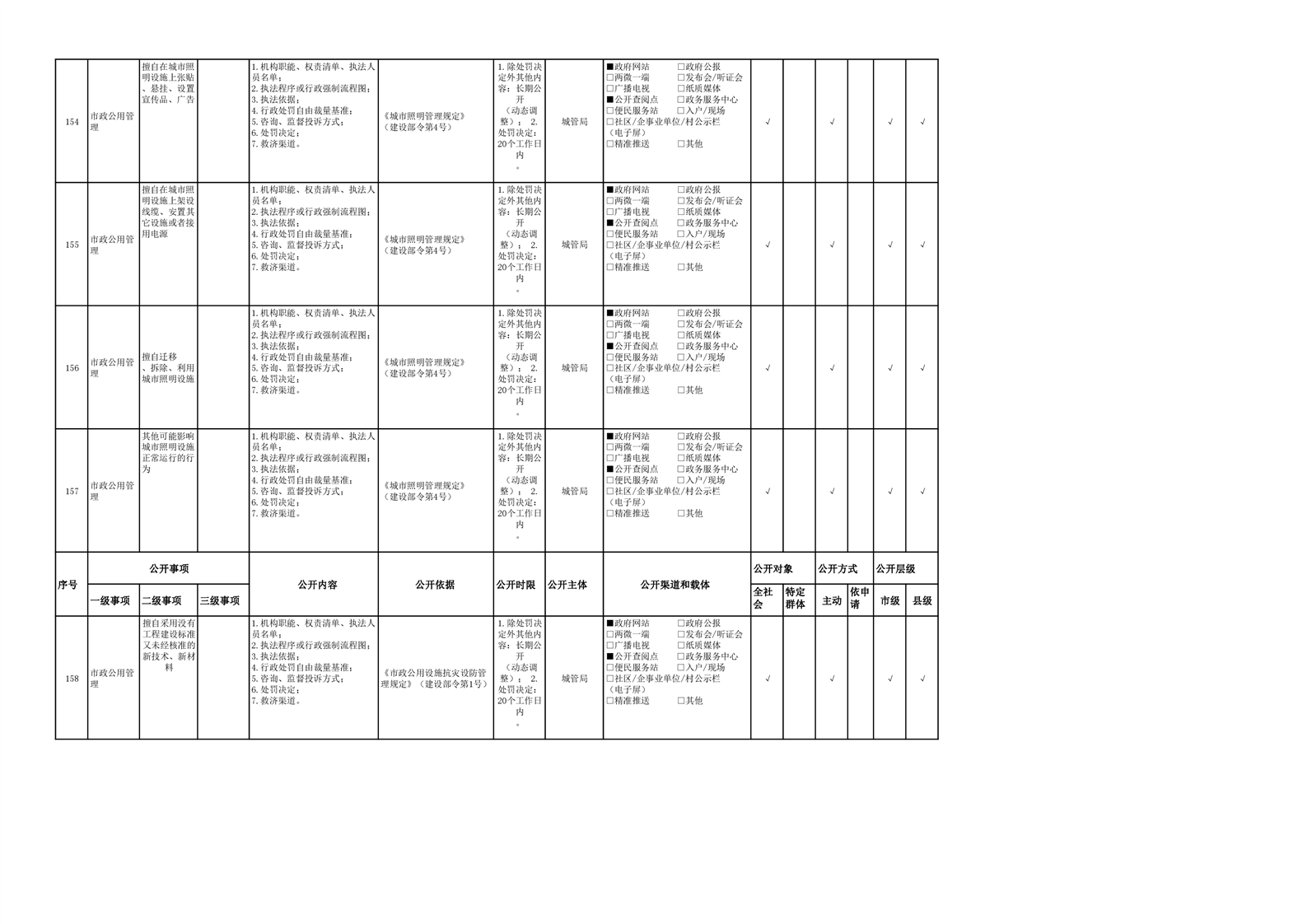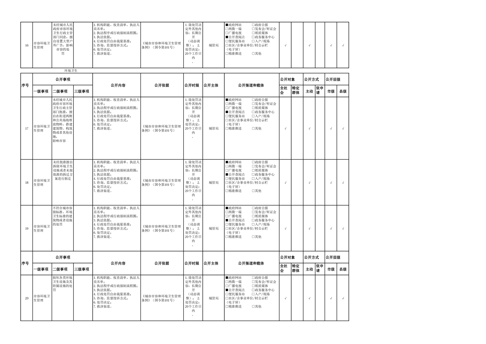 城市综合执法领域基层政务公开参考目录(2022年)