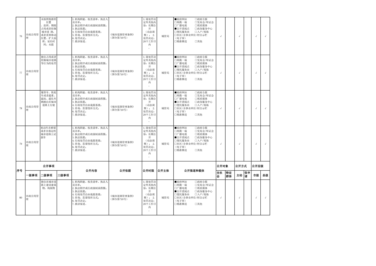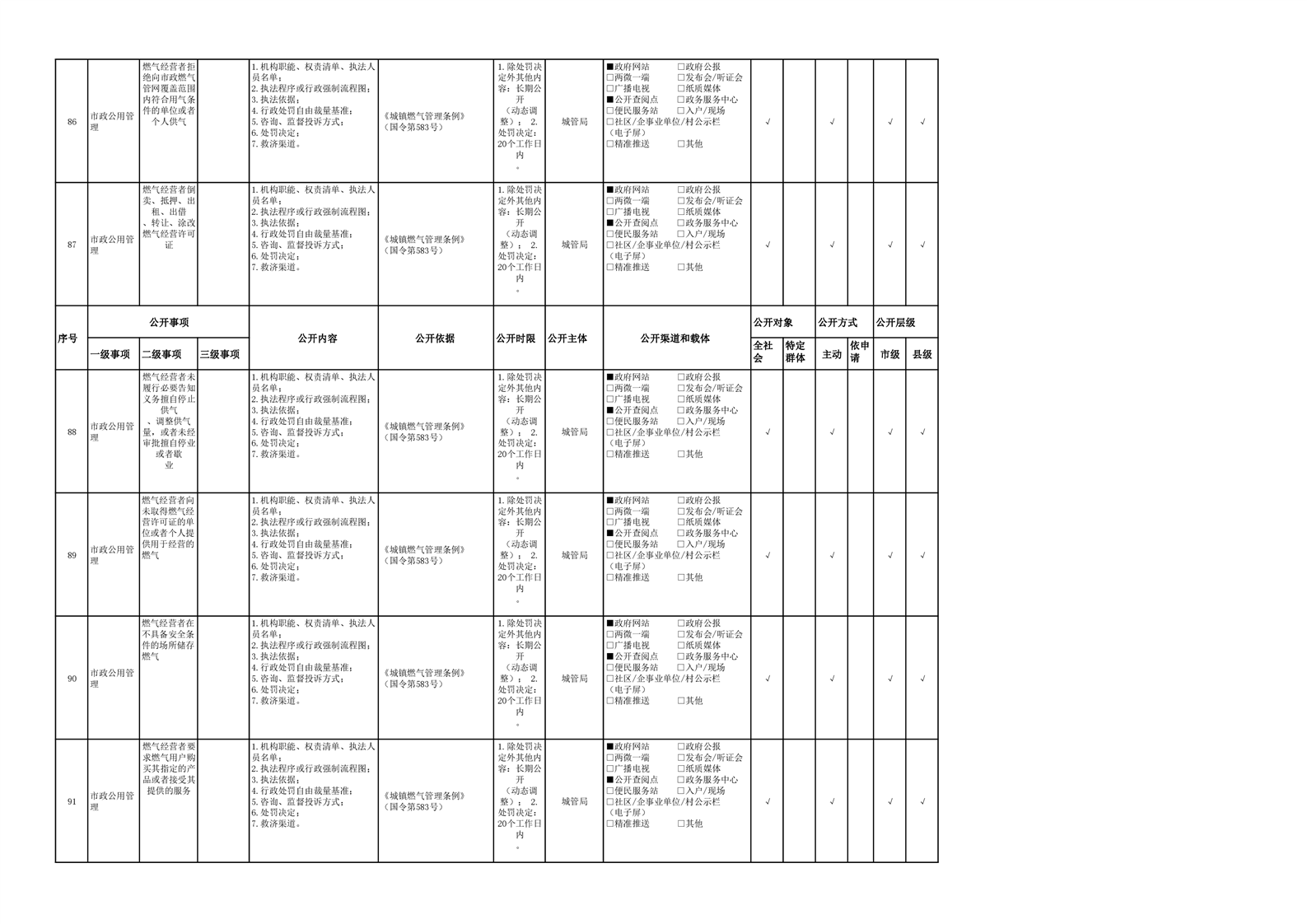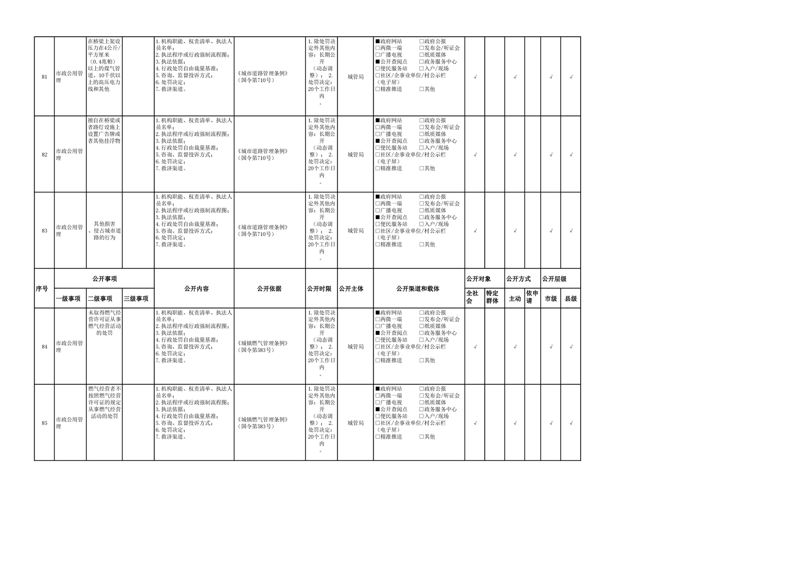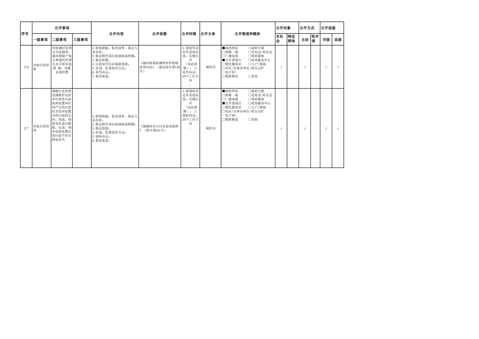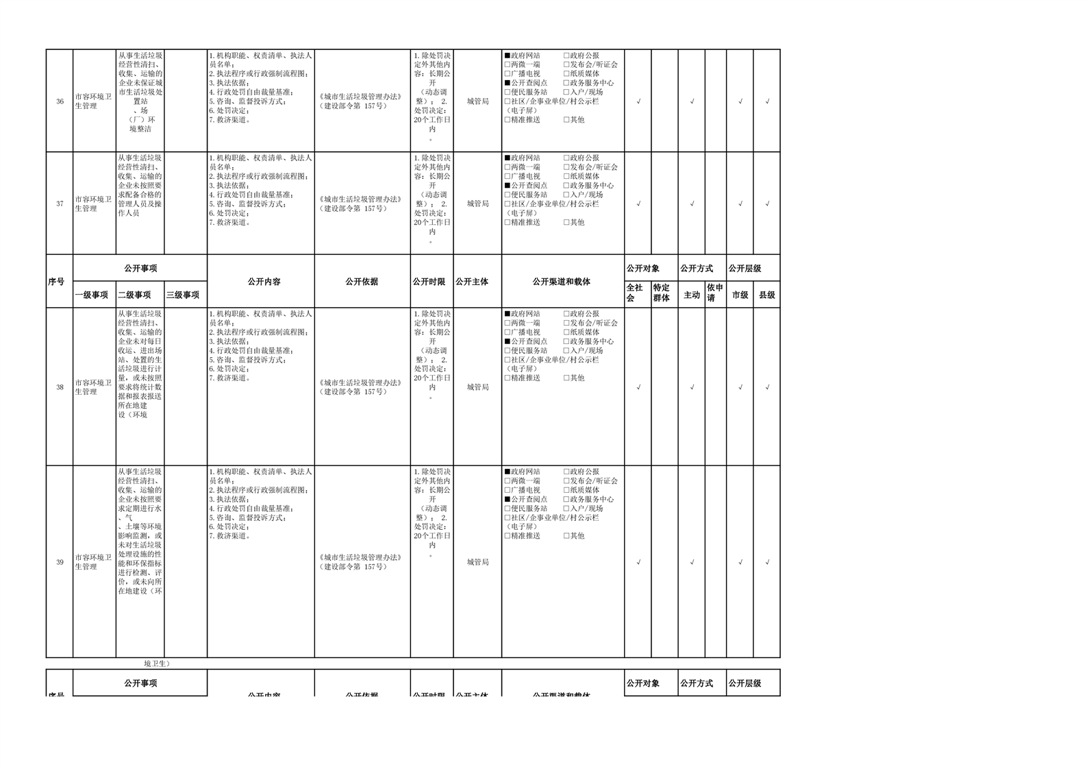 城市综合执法领域基层政务公开参考目录(2022年)