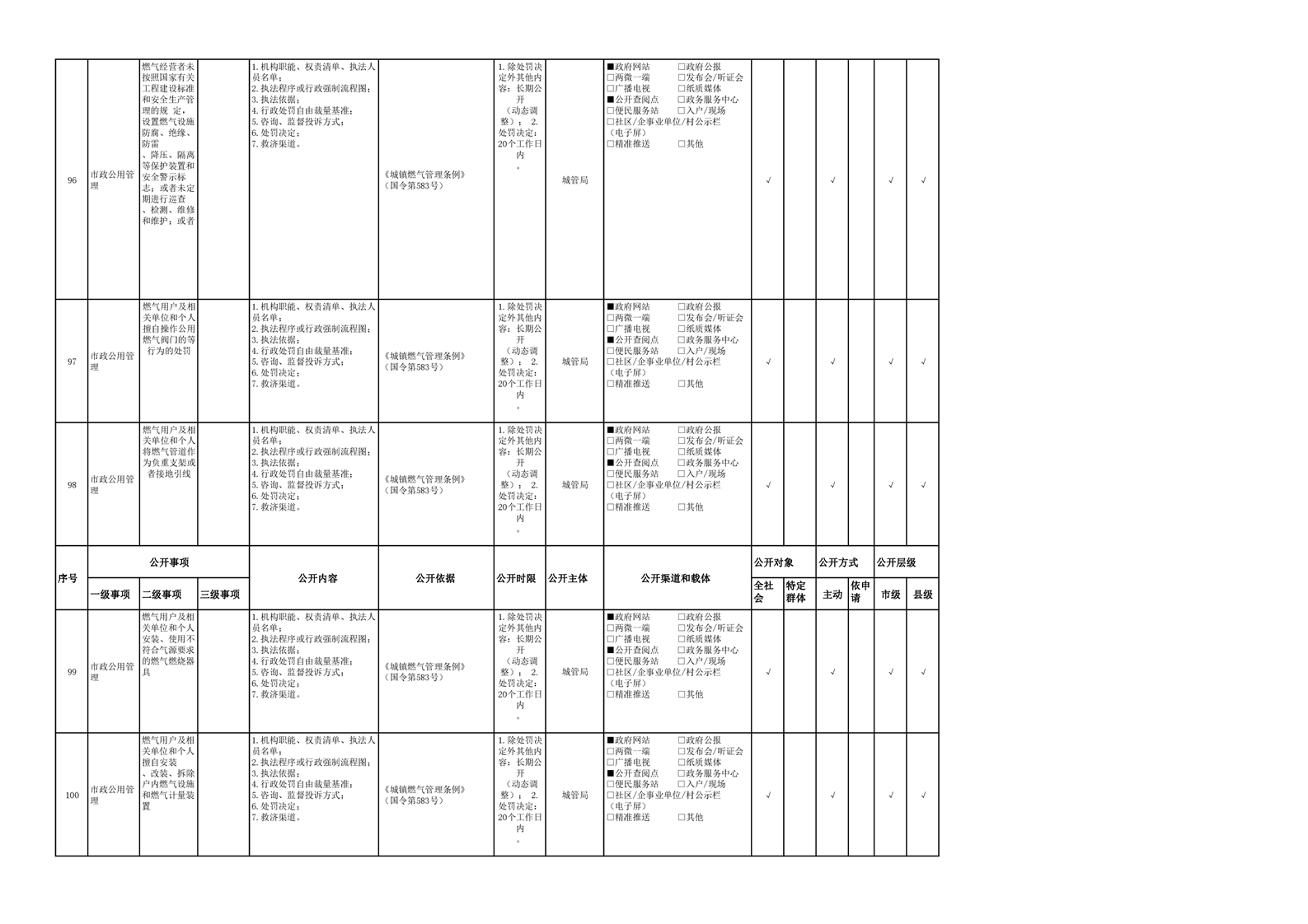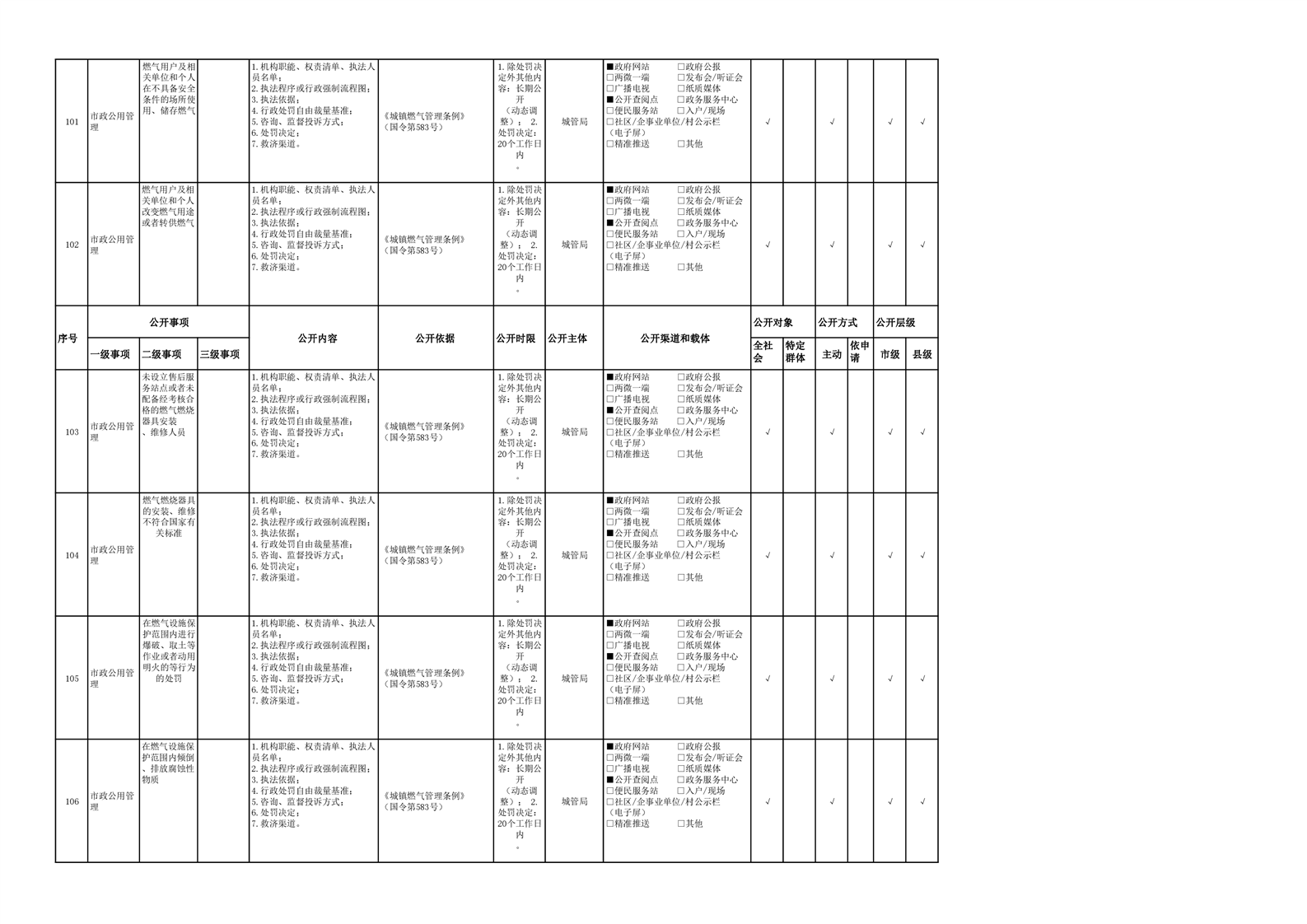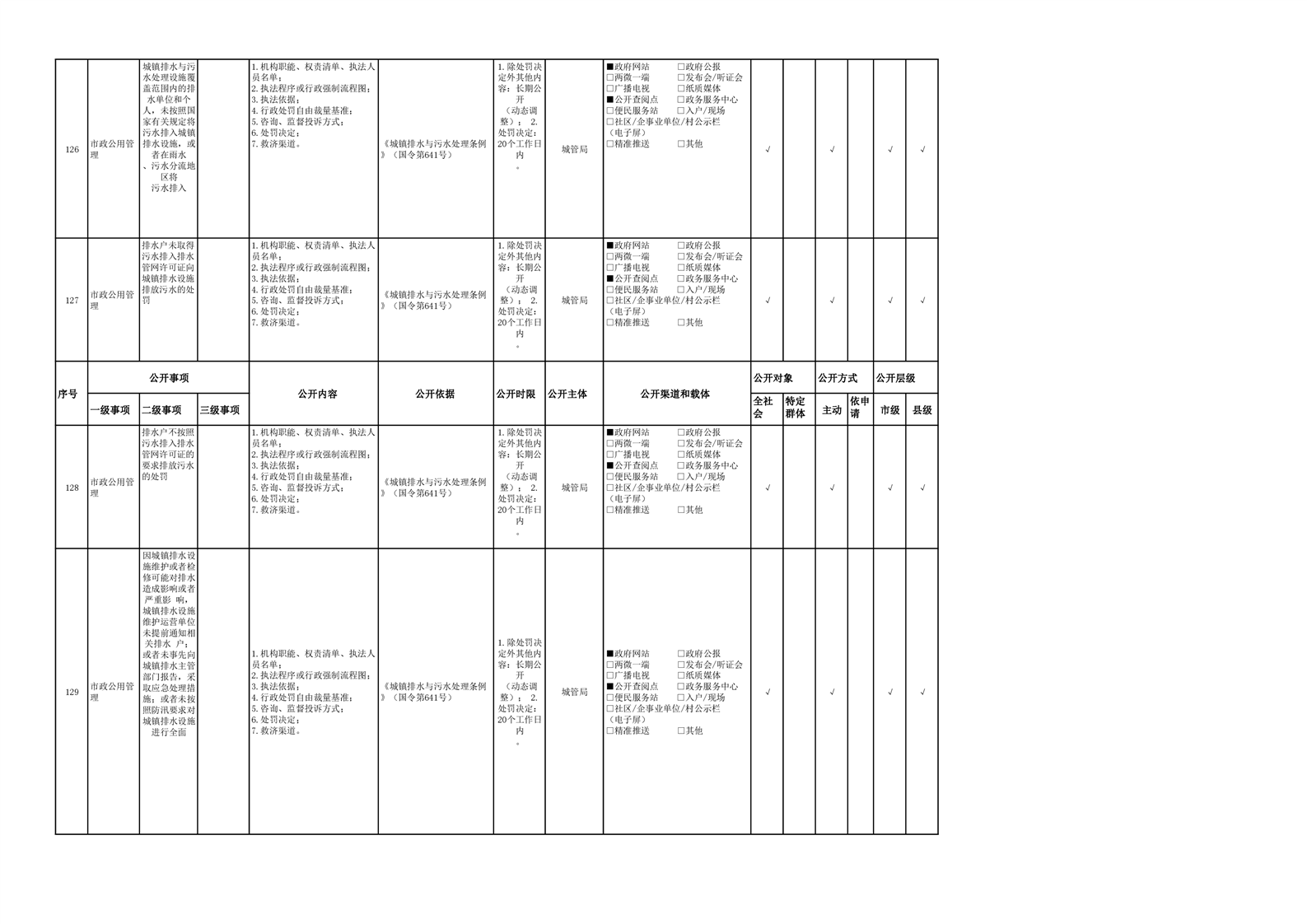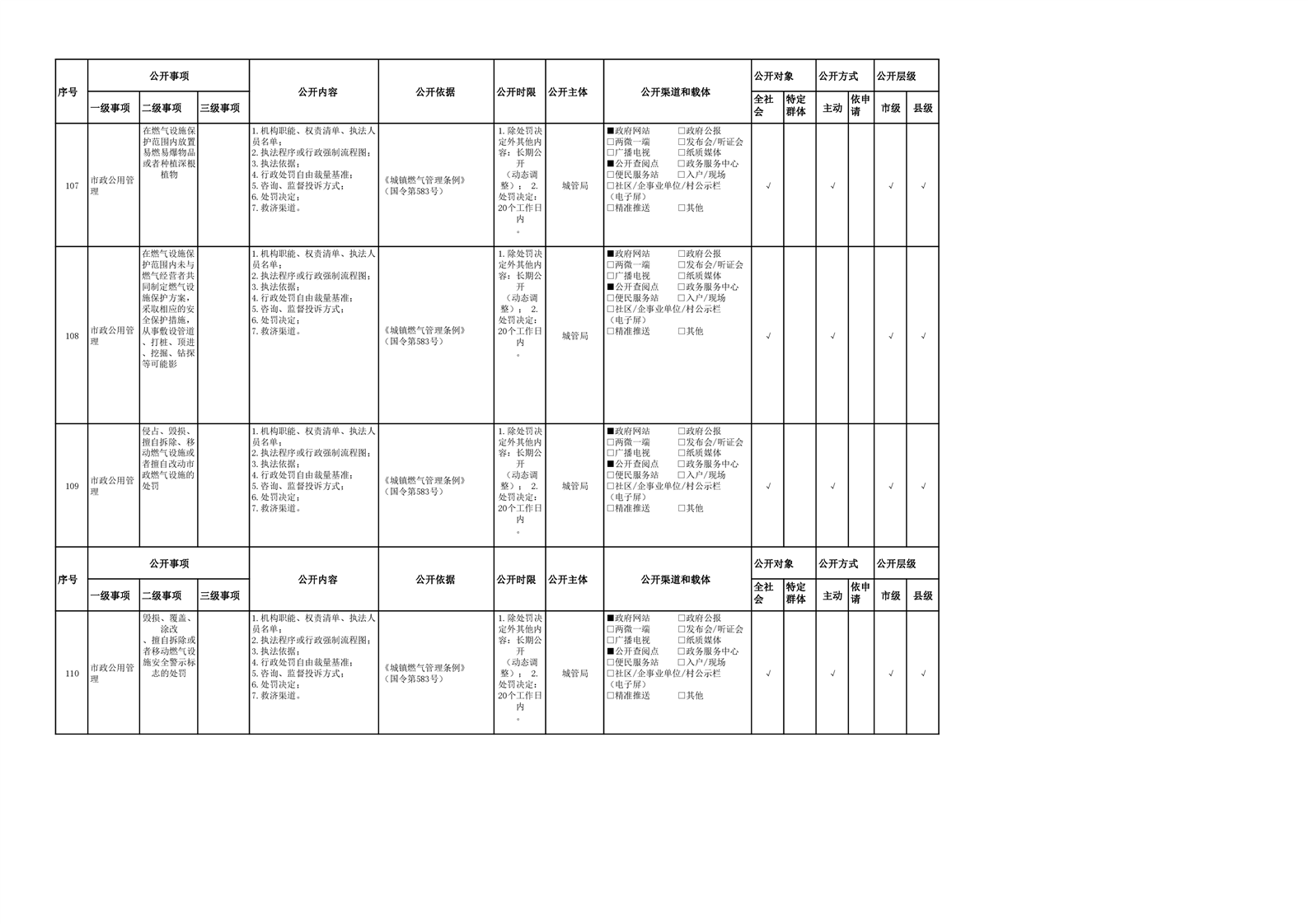 城市综合执法领域基层政务公开参考目录(2022年)