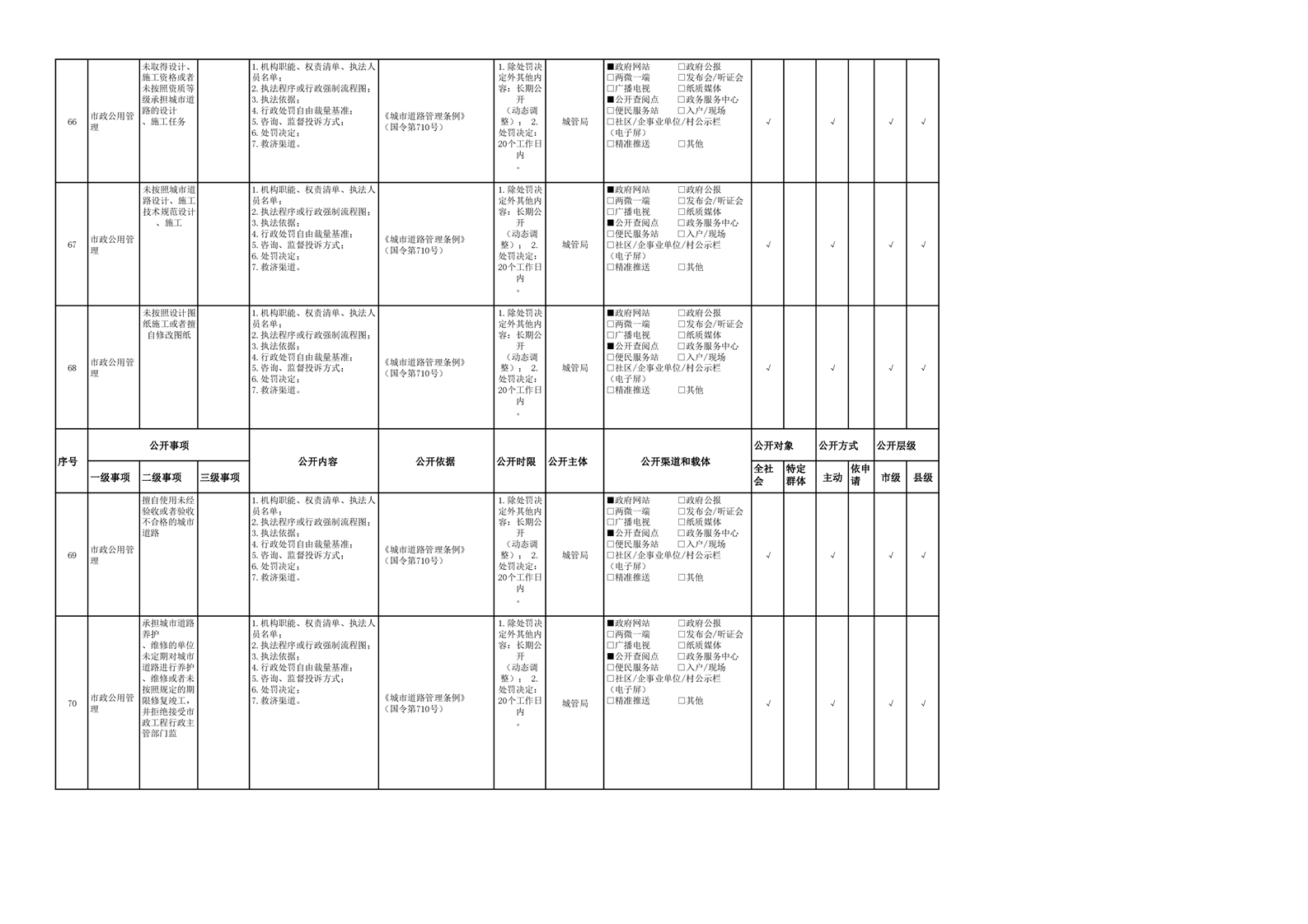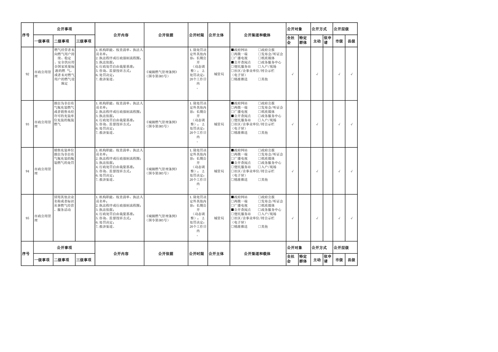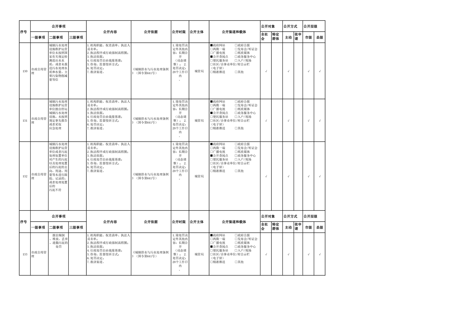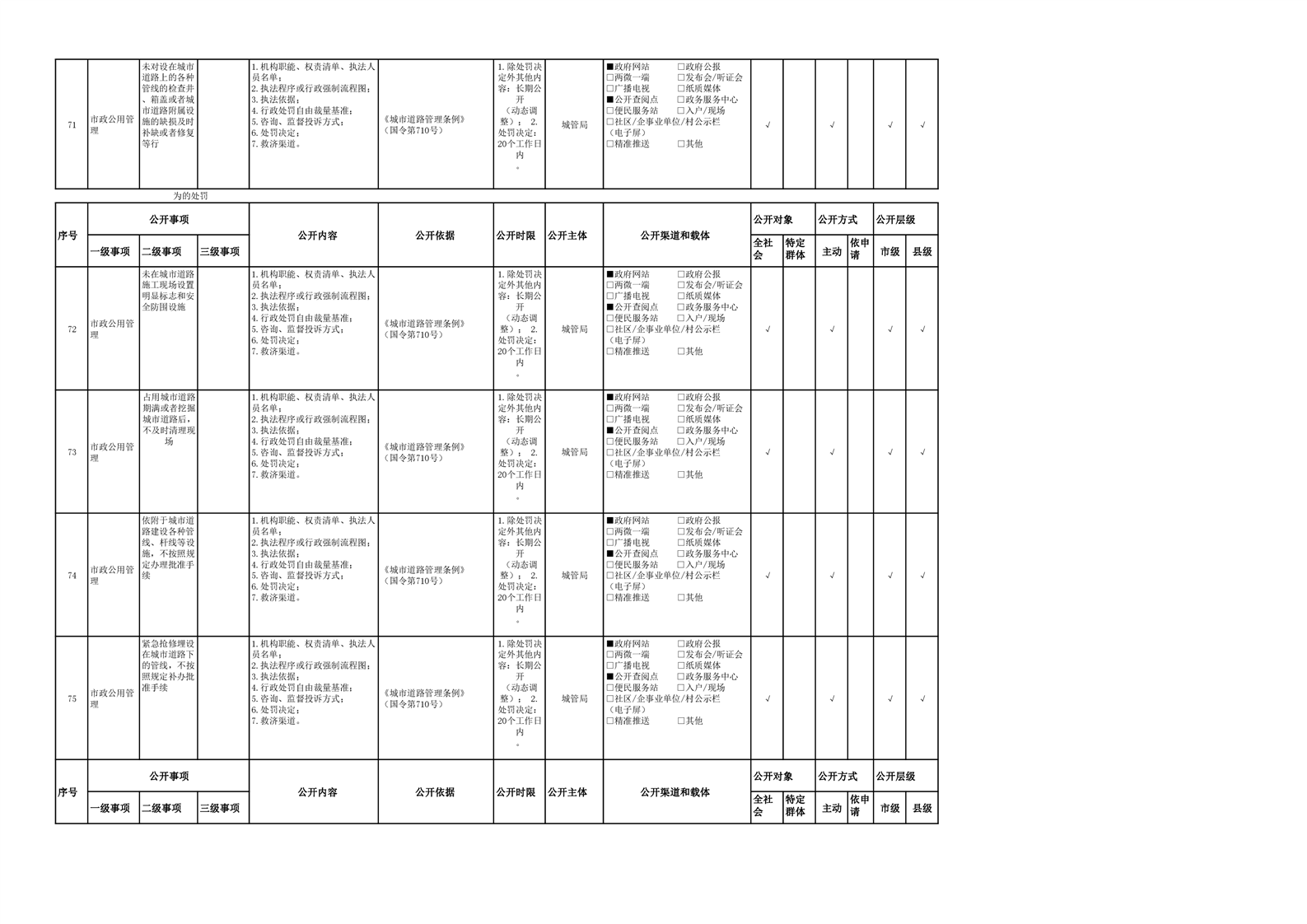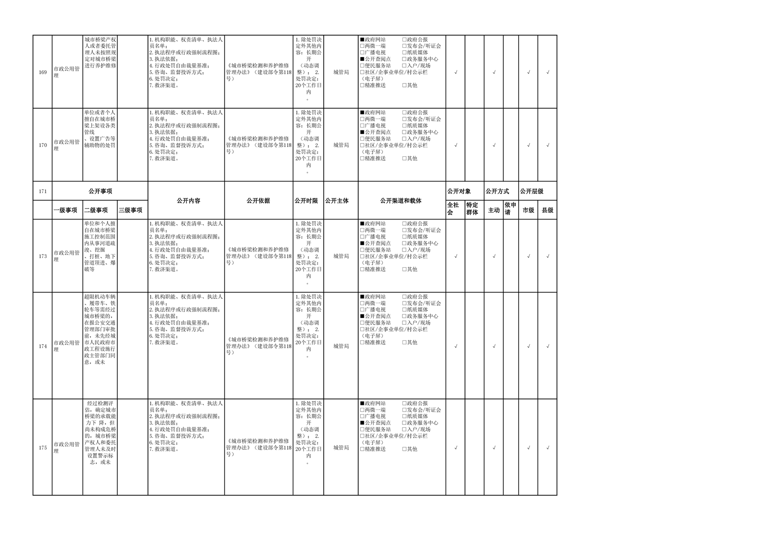 城市综合执法领域基层政务公开参考目录(2022年)