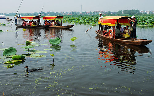 君山野生荷花世界旅游风景区游湖采莲1小时(门票已包括泛舟游湖采莲),沿大湖水路,倘佯荷海,可赏荷采莲,游水嬉戏,感受荷香阵阵、河浪滚滚;漫步林荫小道,可观赏观荷塔、芙蓉古井、汀步桥、爱莲亭、赏荷桥等景点,感受大自然,让人心旷神怡。