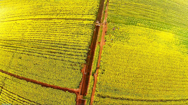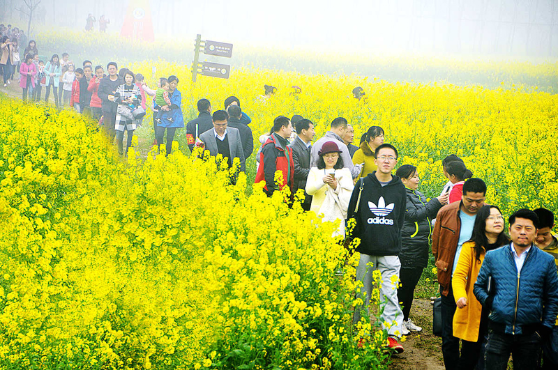 又是一年花黄,又是一年花香。3月21日上午,岳阳市君山区第三届油菜花节在良心堡镇开幕。4.5万亩成片油菜花迎风飘扬,花香万里。来自市区和南县、石首周边县城等地的众多游客纷纷用相机、手机等记录眼前的生态美景,品味万亩油菜花海的烂漫,分享多彩生活的幸福感受。
