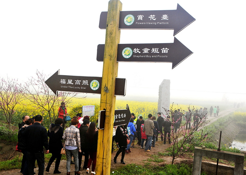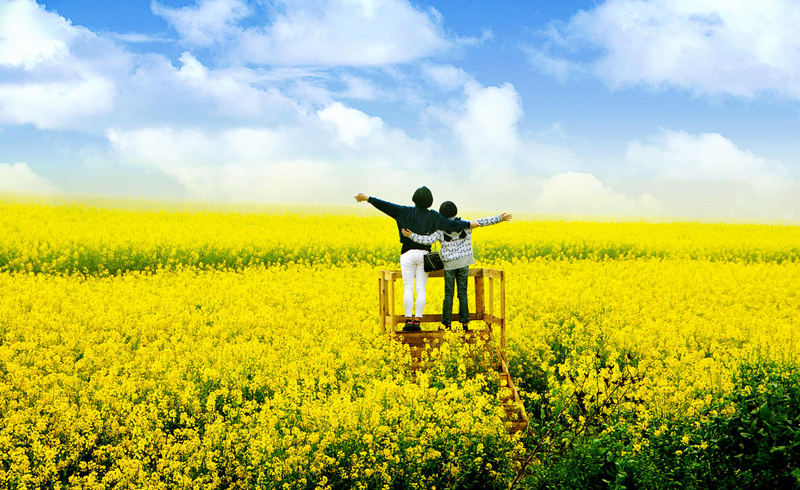 地平土沃的君山区良心堡镇,历来就有种植油菜花的传统。为进一步丰富君山区“春季踏青”的内容,建设生态休闲旅游区,在君山区委、区政府的倡导下,该镇农民主动作为,自发地将连片的土地全部栽上了油菜花,并在田间小路上铺上一层的砂卵石,方便游客进到花丛中观赏;在镇政府的帮助下,该镇还修筑了20多米高的观花台,在花丛中还设置了风车等配套景观设施。伴随着3月暖阳,蜂飞蝶舞,每天都吸引着众多游人前来赏花、亲近自然。