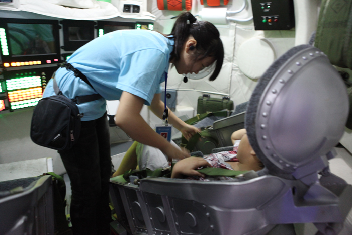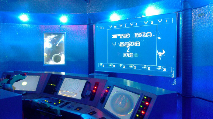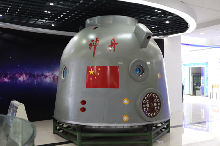 体验版神十返回舱 (游客可以像指令长聂海胜一样,躺坐在宇航员座椅上,手持操纵杆,点击火箭发射按钮,感受从发射、升空到返回地面的全过程体验。)