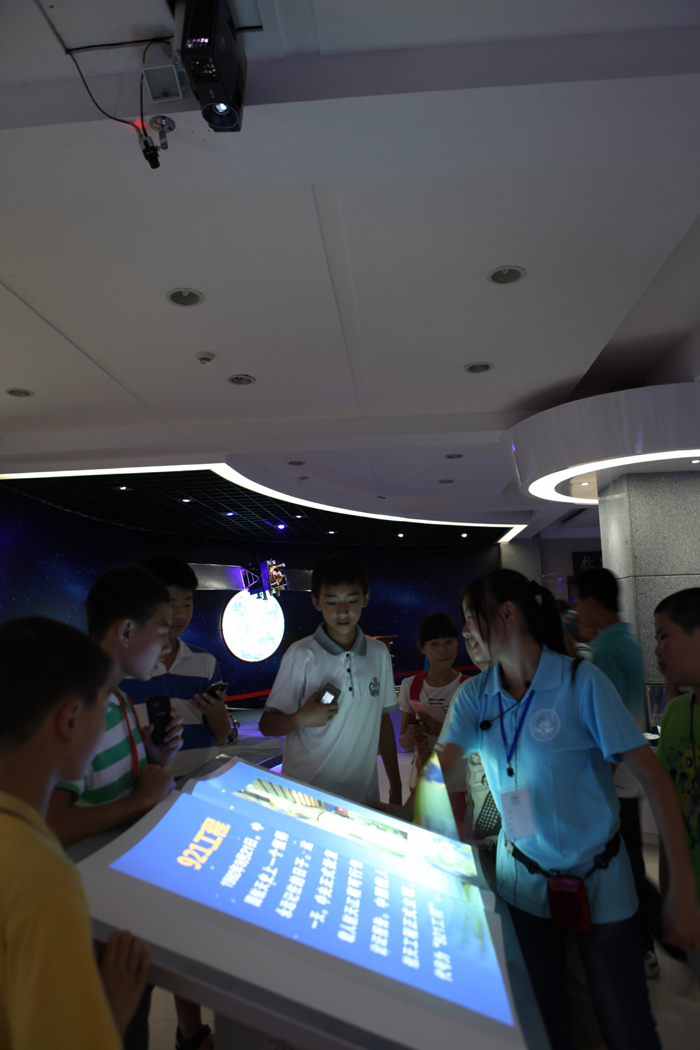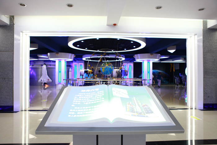 隔空翻书(轻轻地在空中挥一挥手,身旁的《中国航天发展历程》就能神奇地自动翻页。科技的力量是无限的!)