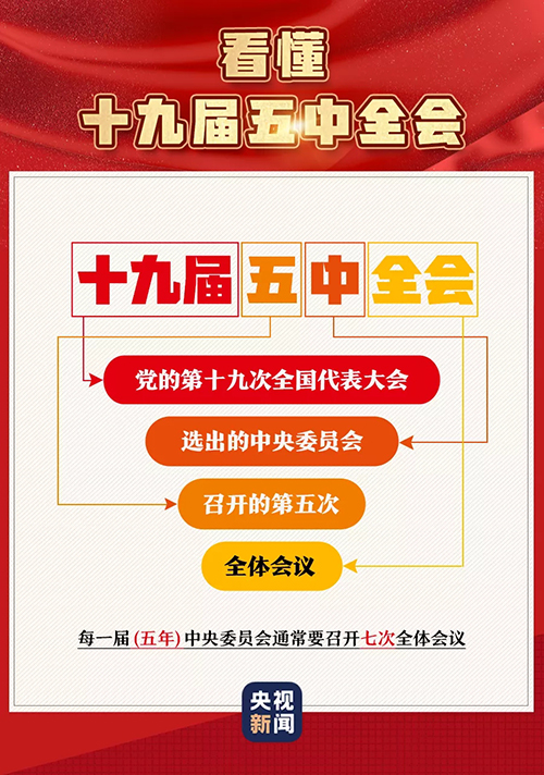中国共产党第十九届中央委员会第五次全体会议26日上午在京召开。中央委员会总书记习近平代表中央政治局向全会作工作报告,并就《中共中央关于制定国民经济和社会发展第十四个五年规划和二〇三五年远景目标的建议(讨论稿)》向全会作了说明。