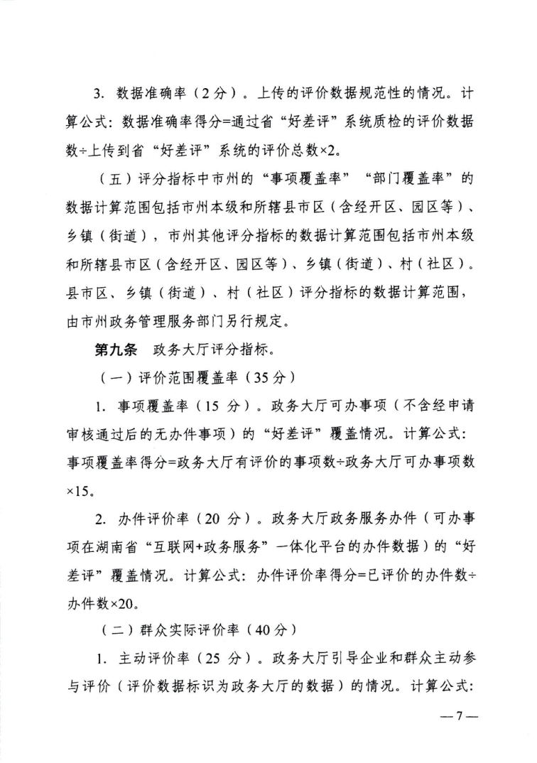 湖南省政务服务“好差评”监督考评细则