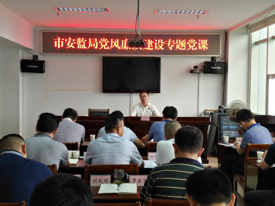 9月10日,市安监局举办党风廉政建设专题党课,市纪委常委、监委委员付汉家以“关于作风建设的几点思考”为题作专题辅导报告,市安监局党组书记、局长林军华主持并对党风廉政及安全生产工作进行安排部署,市纪委监委驻质监局纪检监察组组长陆亚超及市安监局全体机关干部职工参加学习。