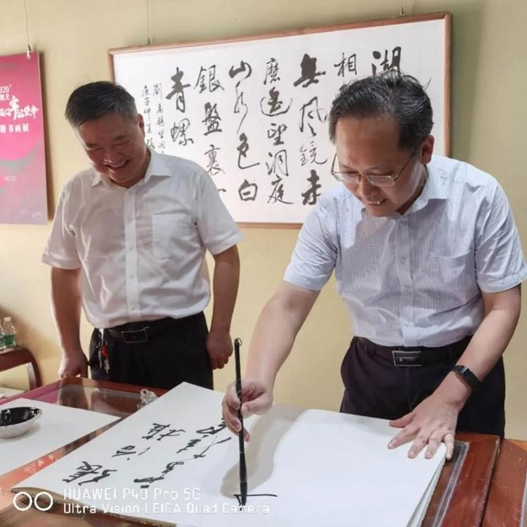 为弘扬中国传统文化,活跃机关党建文化,7月22日,由市直机关工委、市洞庭新城投资建设开发有限公司、岳阳环球融创文化旅游投资有限公司联合举办的2020年岳阳市直机关“不忘初心、牢记使命”书画展览旬活动在岳阳市美术馆流动展厅墨海轩画廊开幕。市人民政府原市长黄甲喜同志,市政协原主席、岳州书画院院长张治雄同志,市委统战部原常务副部长、中国书协会员、岳阳市书协名誉主席雷桂云同志,市直机关工委书记、教授李桂华同志,市直机关工委副书记翁桂萍同志等领导以及岳阳市美术馆馆长、著名画家戴剑等书画名家、书画爱好者参加。开幕式由市直机关工委领导曹克强同志主持,李桂华书记致辞并宣布开幕。2020年岳阳市直机关“不忘初心、牢记使命”主题书画展既是市直机关工委庆“七一”系列活动之一,也是在全市营造积极健康向上的党建文化氛围的措施之一。希望能够借此活动,教育引导广大党员干部在涵养中国传统文化精髓的同时,能够牢记党的光辉而又艰辛的99年历程,始终做到不忘初心,牢记使命,用初心激发斗志,以使命强化担当,在创建“三表率一模范”政治机关过程中,始终走在前,作表率。