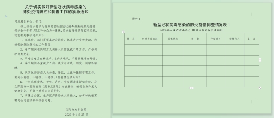2. 进行疫情防控紧急通知,认真开展集团内部涉疫人员排查、登记、上报和跟踪管理工作,做到不漏报、不瞒报、不错报。