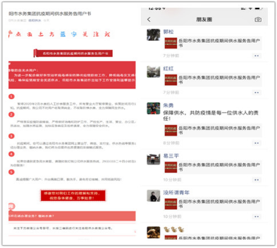 5、2月1日,集团党委在做好安全防护的情况下召开抗疫保供专题会议,对抗疫保供工作做出全面部署,决定尽一切力量确保人民群众生命健康安全,当日发布《抗疫期间供水服务告用户书》,向市民做出郑重承诺:2月份不实行人工抄表,不收取用户滞纳金、阶梯水费,欠费暂不停水,体现了民生企业的社会责任担当。