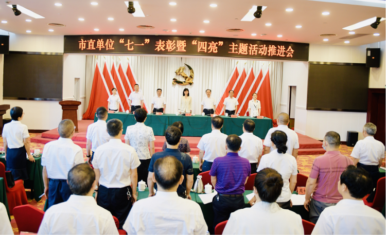 6月29日上午,市直机关工委组织召开市直单位“七一”表彰暨“四亮”主题活动推进会,重温党的光辉历史,歌颂党的伟大功绩,表彰先进集体和优秀个人,部署推进“四亮”主题活动,努力为全面落实“三高四新”战略定位和使命任务,加快建设名副其实的省域副中心城市提供坚强保障。市委常委、市委统战部长邱虹出席并讲话,对受到表彰的先进集体和优秀个人表示热烈祝贺,向市直机关各级党组织、广大党员干部和党务工作者致以节日的问候和祝福。市直机关工委书记李桂华宣读表彰通报,常务副书记方欲林主持会议,各分管领导参加。