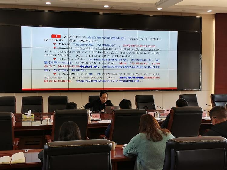 12月9日上午,市直机关工委组织了中心组(扩大)学习,工委书记李桂华同志以《我国国家制度和国家治理现代化的政治宣言和行动纲领》为题,详细解读党的十九届四中全会精神,同时,带领大家学习了习近平同志关于扶贫工作的重要论述。工委全体在职干部参加了此次学习。