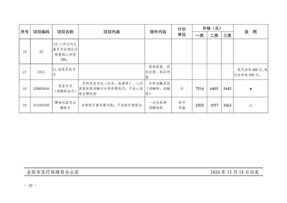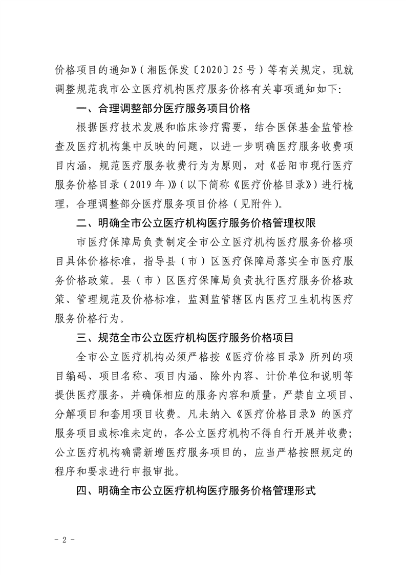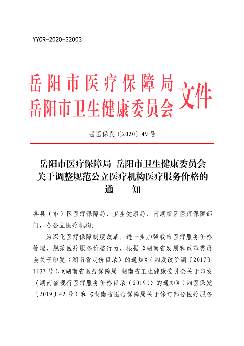 岳医保发:49号 关于调整规范公立医疗机构医疗服务价格的通知