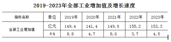 据初步核算,全县全部工业实现增加值152.29亿元,同比增长4.5%。其中规模以上工业企业增加值同比增长7.2%,高新技术产业园区规模工业增加值同比增长4.1%。分产业看生物医药、建筑建材、机械制造工业总产值分别同比增长22.0%、30.8%、40.6%;农副产品加工业总产值同比下降34.4%。全年规模以上工业企业实现利润同比下降8.4%。