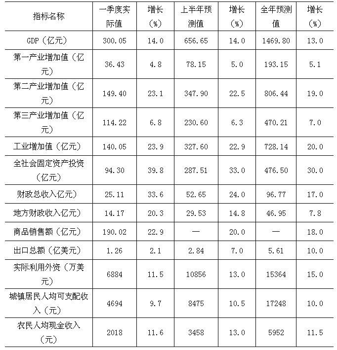 综合多方面因素,运用宏观经济计量模型对我市主要经济指标进行预测,预测数据见下表: