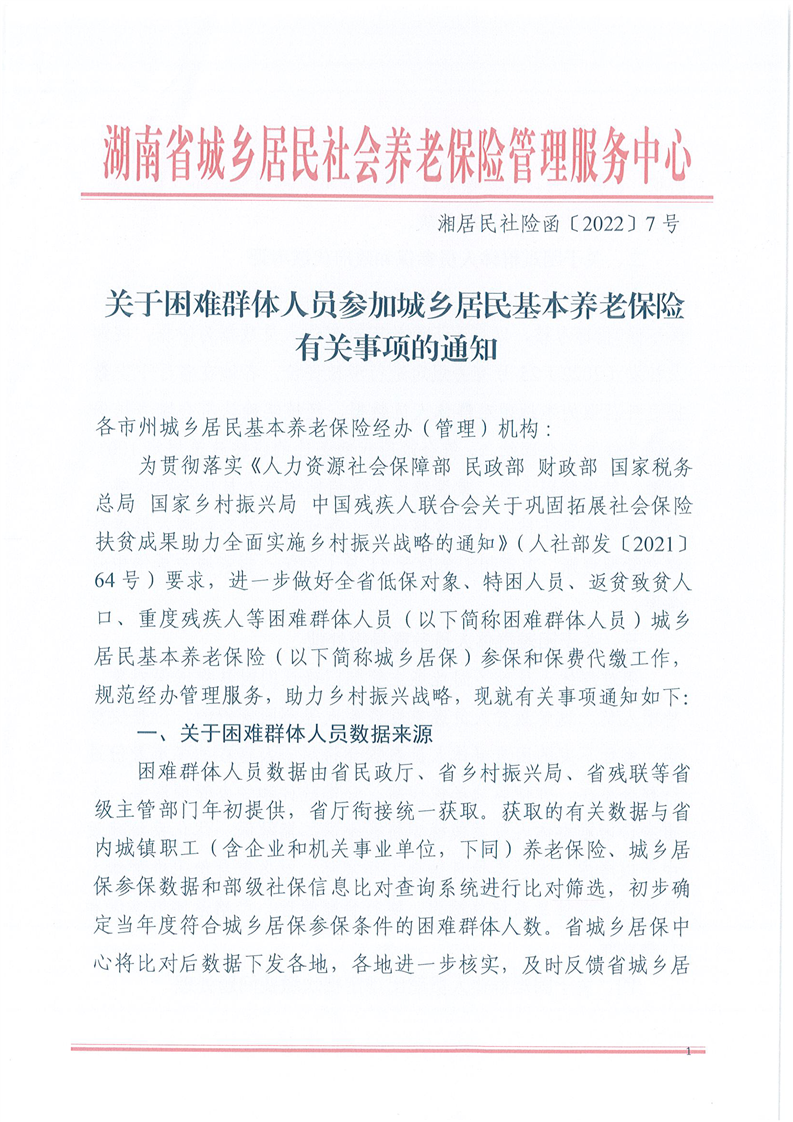 关于困难群体人员参加城乡居民基本养老保险有关事项的通知