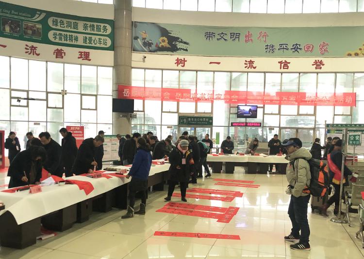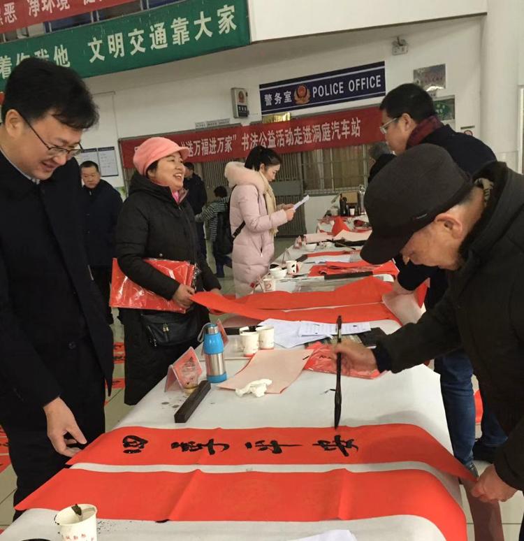 本报讯(记者 刘神尊)无联不成春,有联春更浓。1月16日上午,市总工会、市书法家协会在洞庭汽车站开展“送万福进万家”书法公益活动,12名书法爱好者现场挥毫泼墨,为旅客义务书写春联和“福”字,把美好祝福送到千家万户。