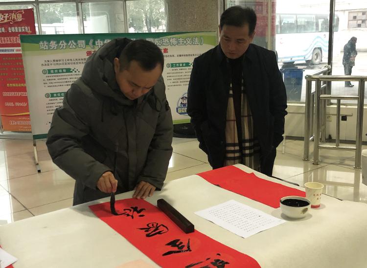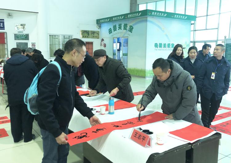 此次活动旨在深入学习宣传贯彻习近平新时代中国特色 社会主义思想,紧紧聚焦“全面建成小康社会”这一主题,面向广大职工群众,坚持培根铸魂、守正明德、描绘新时代精神图谱,深入基层、深入一线,广泛开展书法公益活动,在春节前夕切实把党和政府对人民群众的关怀和祝福送到千家万户。活动现场,书法爱好者们笔走龙蛇,楷书、行书各显神韵,将赞美幸福生活、寓意美好的句子写在喜庆的春联上,一幅幅散发着清新墨香的大红春联充满了浓浓的年味。前来求字的旅客络绎不绝,一副副喜庆春联、福字成了抢手的“精神年货”,墨迹未干就已被收入囊中。截止活动结束,送出春联和“福”字各1000多幅。