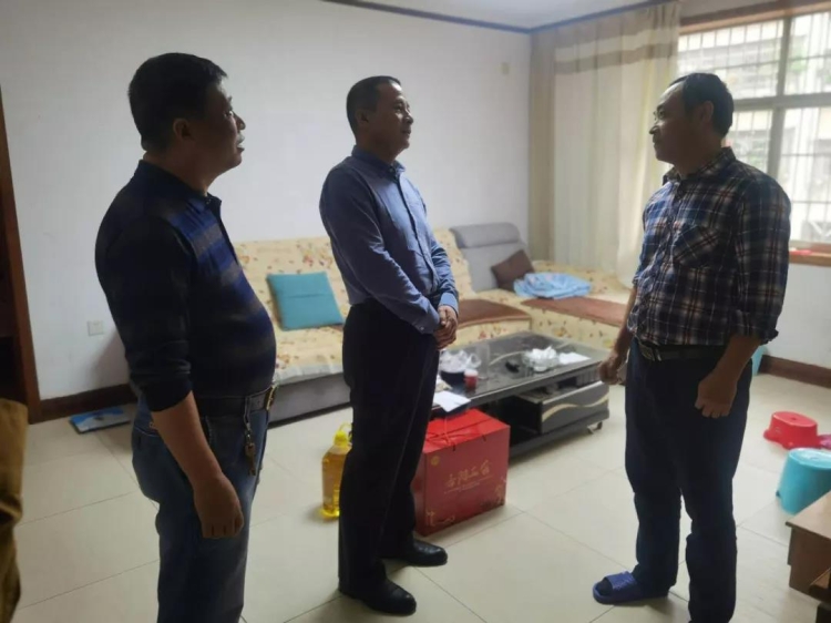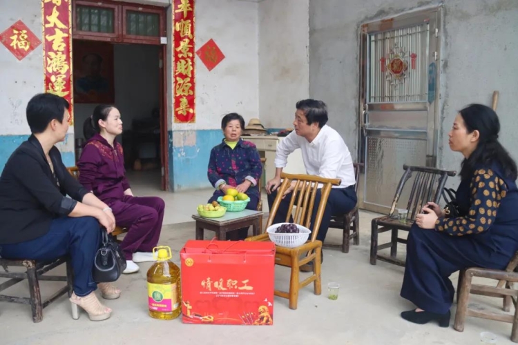 ▲市人大常委会党组副书记、副主任、市总工会主席彭先政(右二)、市总工会副主席、女工委主任朱飞鹰(右一)先后前往走访慰问困难职工。