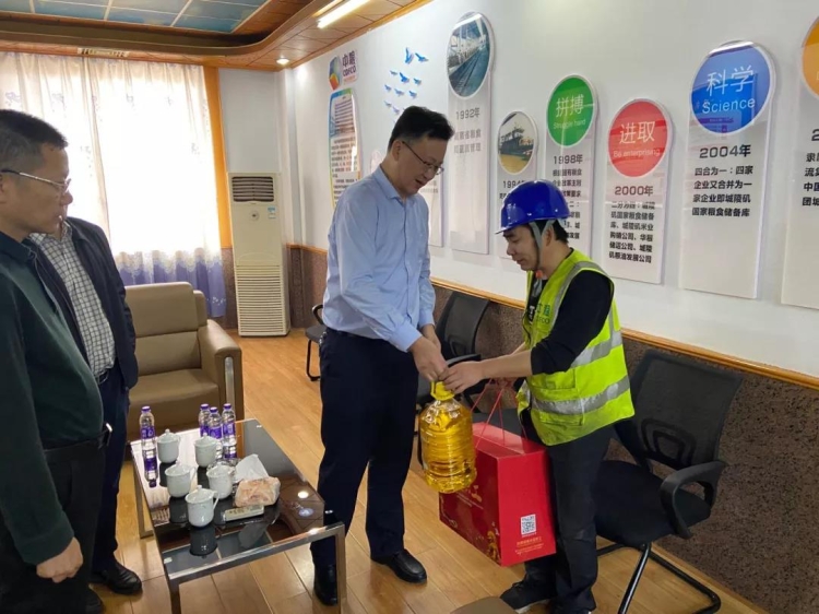 ▲市总工会党组书记、常务副主席李炎云(上图:右二)先后前往华粮物流公司、长动公司、岳阳林纸走访慰问困难职工。