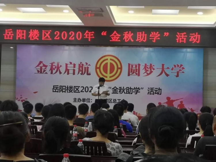 近期,“金秋启航·圆梦大学”岳阳楼区2020年“金秋助学”活动仪式举行,岳阳楼区委副书记游志坚出席并讲话,岳阳楼区委常委、区委统战部部长、区总工会主席白铭科主持。岳阳楼区总工会全体工作人员、乡街工会主席、受助学生及家长等140多人参加。