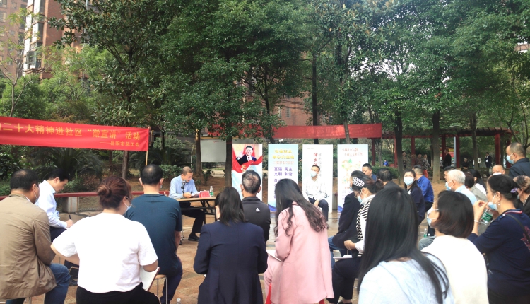 为进一步引导基层一线的党员干部群众全面学习党的二十大精神,推动党的二十大精神深入基层群众、走进千家万户,11月11日,市总工会党组成员、副主席童俏冰带队在东升社区开展党的二十大精神进社区“微宣讲”活动,市总工会二级调研员陶明亮和机关部分部室负责人参加。
