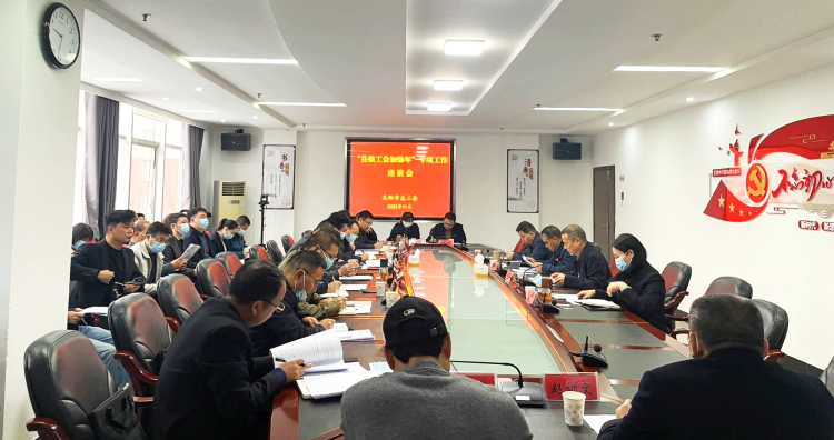 为深入贯彻落实全总、省总关于开展“县级工会加强年”专项工作要求,近日,市总工会组织召开“县级工会加强年”专项工作座谈会。各县市区总工会党组书记、组织部部长,市总工会全体班子成员、部室负责人参加会议。