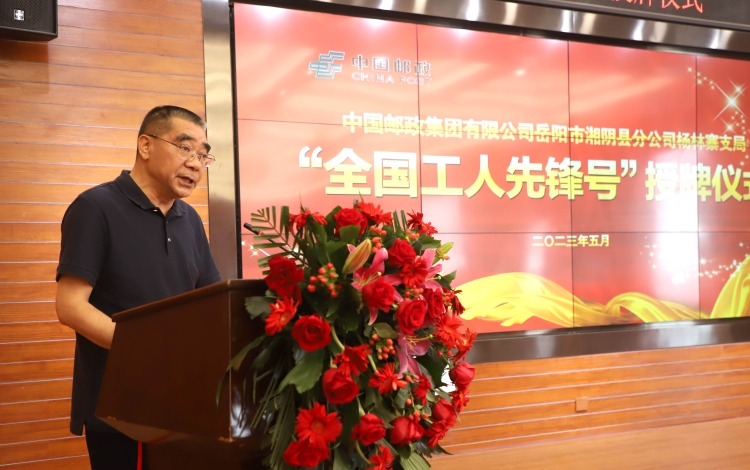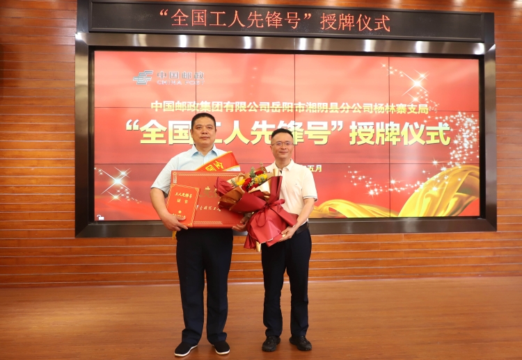 5月29日,中国邮政集团公司湖南省湘阴县分公司杨林寨支局荣获“全国工人先锋号”授牌仪式举行,市人大常委会副主任、市总工会主席喻文为杨林寨支局“全国工人先锋号”荣誉称号授牌,市总工会党组书记、副主席彭公穆宣读表彰决定。