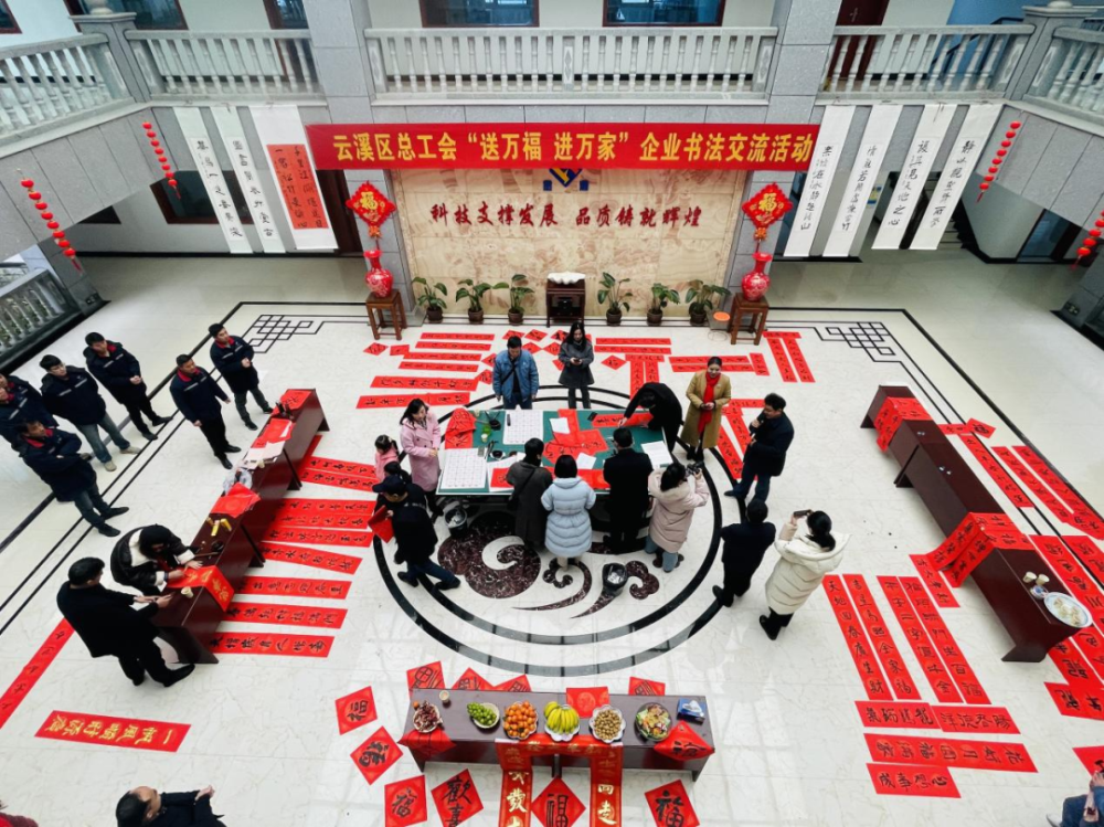 近日,云溪区总工会开展的2024年春节“送万福,进万家”书法公益活动首场在岳阳金瀚高新技术股份有限公司举行。