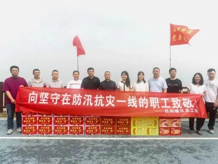 云溪区总工会以“迅”应“汛”,制订防汛工作预案,实行联点水库24小时值班监管,同时及时筹集资金3万元,来到区防汛抗灾指挥部及撇洪渠分指挥部、清溪水库、白荆村等重点防汛一线,向坚守岗位的干部群众表达敬意和慰问,并为防汛人员送去了八宝粥、方便面、矿泉水、牛奶等慰问物资。