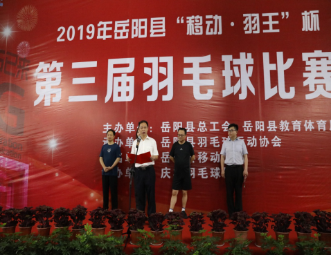 6月29日,由岳阳县总工会、岳阳县教体局主办,县羽毛球运动协会承办的岳阳县 “移动·羽王”杯职工羽毛球比赛正式拉开帷幕,县委常委、统战部部长、总工会主席苏红琳出席开幕式。全县23支代表队共184名运动员参加比赛。大赛采用中国羽毛球协会最新审定的《羽毛球竞赛规则》,在2天时间内进行男双、混双等小组循环赛、交叉淘汰和附加赛,决出前8名。