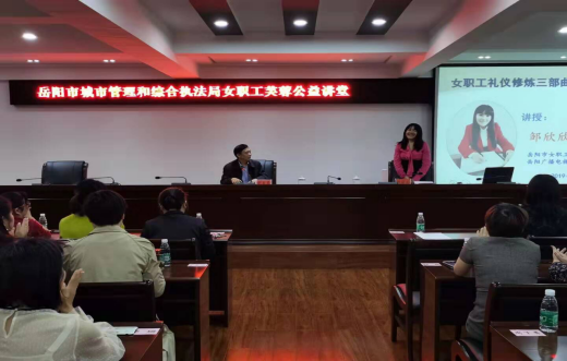岳阳广播电视大学副校长、副教授、岳阳市学术技术带头人邹欣欣为大家讲授《女职工礼仪素养修炼三部曲》,从礼遇自己、礼遇他人、礼遇环境三个方面讲解女职工形象塑造、沟通技巧等方面的知识,事例丰富,深入浅出,引人入胜。精彩的讲课引发了全场的热烈讨论,女职工代表们纷纷表示,此次听课收获颇丰,受益匪浅,今后会以更饱满的热情和愉悦的心情投入到工作中去,为建设美丽岳阳贡献自己的一份力量。