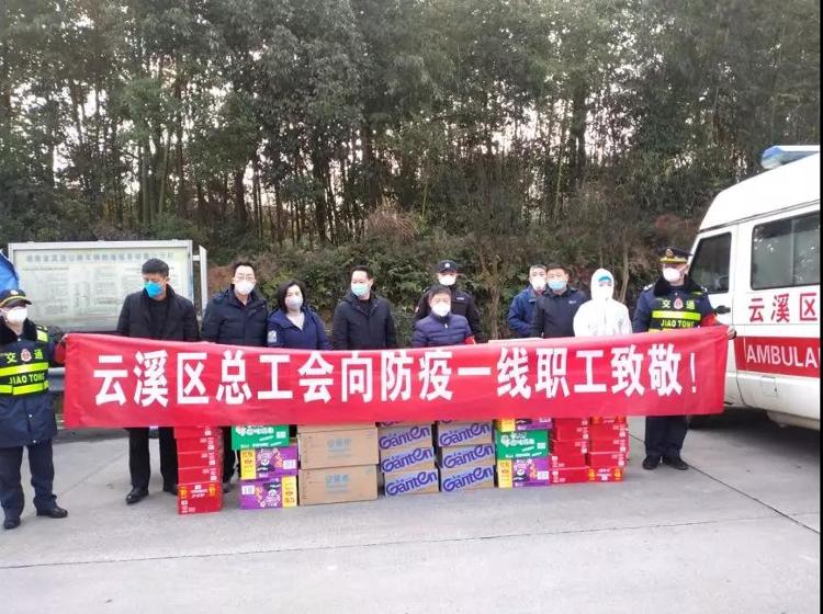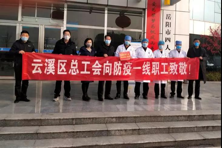 1月28日,云溪区人大常委会副主任、区总工会主席熊永初,区总工会党组书记陈小雪等一行先后来到市四医院、随岳高速云溪站及道仁矶站等,携带牛奶、矿泉水等物资以及慰问金,为奋斗在全区一线抗击新型肺炎的医务工作者、交警、运管、执勤等抗疫“勇士”,送上了“娘家人”的关怀与温暖。