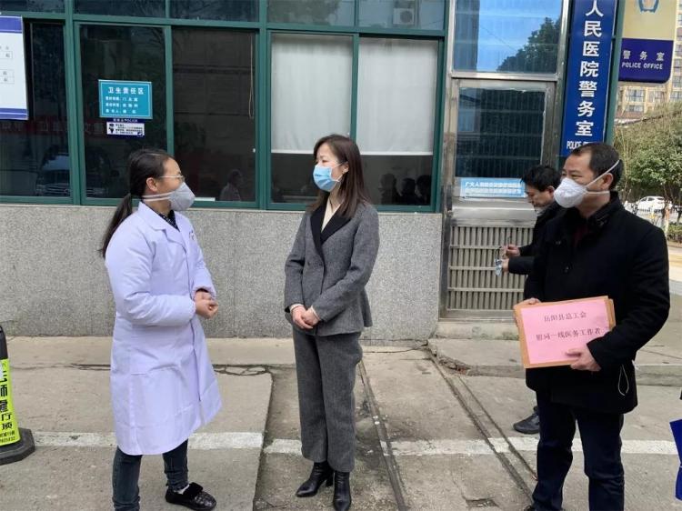 “你们是当之无愧的白衣战士、最美逆行者,你们辛苦了!”这是岳阳县委常委、县总工会主席苏红琳带领县总工会慰问组在县人民医院看望慰问战斗在一线职工时送上的真情问候。疫情发生后,县总工会及时制定疫情防控应对举措,筹措12万元慰问疫情防控一线医务人员专项资金。全县各基层工会迅速行动,为一线医务人员、防控一线工作者送温暖、献爱心,把党和政府的关怀送到每个职工的心坎上。截至目前,岳阳县总工会下拨慰问金17万元,全县各基层工会安排慰问资金、物资总计超过170万元。