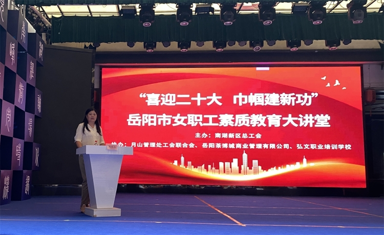 为丰富女职工业余文化生活,近日,南湖新区总工会在茶博城小剧场举办“喜迎二十大 巾帼建新功”岳阳市女职工素质教育大讲堂活动。