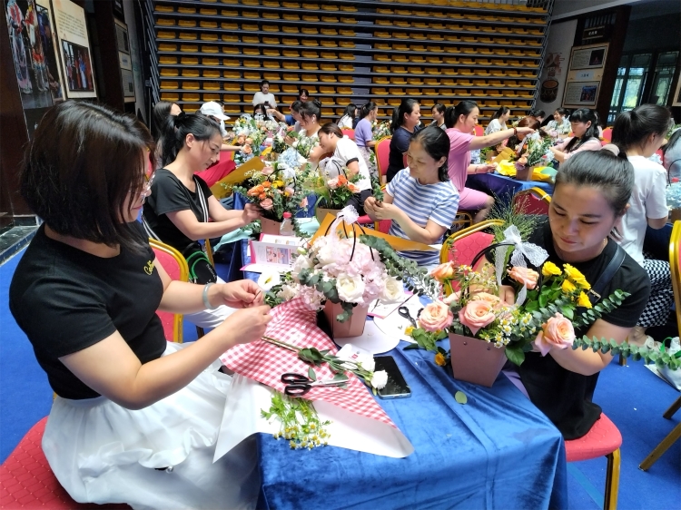 活动邀请了市总工会公益讲师游烈红老师为女职工讲解插花的历史、常见鲜花种类的生长习性、养护管理和花卉色彩搭配等知识,并现场演示插花。
