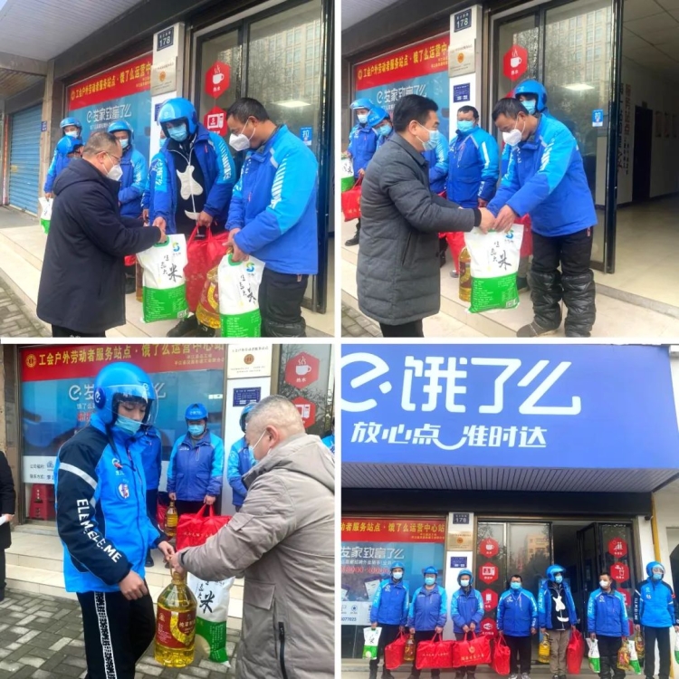 慰问组一行走访慰问了“饿了么”站点,详细了解外卖配送员及企业的实际情况,并为外卖配送员代表发放“暖心大礼包”,让新业态群体的“小蜜蜂”在辛勤付出中,感受到来自党委、政府的关心和工会组织的关爱。