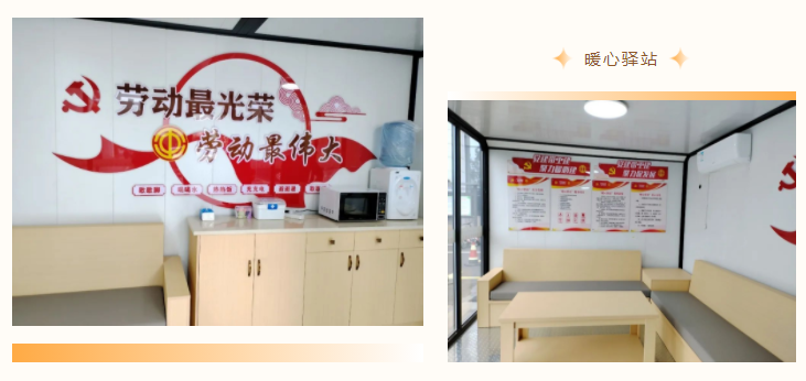 据了解,驿站面积为30平方米,设置了休息区、学习区、补给区等功能区,暖心小屋将为环卫工人、城管队员、快递小哥、出租车司机等户外劳动者提供暑可纳凉、寒可取暖、渴可饮水、累可歇脚、伤可用药等贴心服务。