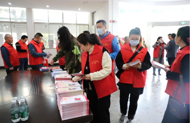 活动现场设置了宣传手册分发台,志愿者将普法宣传手册送至各企业的女职工手中,同时向她们介绍、说明手册相关内容。