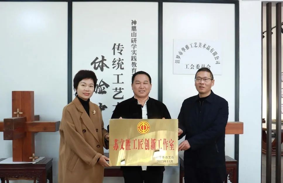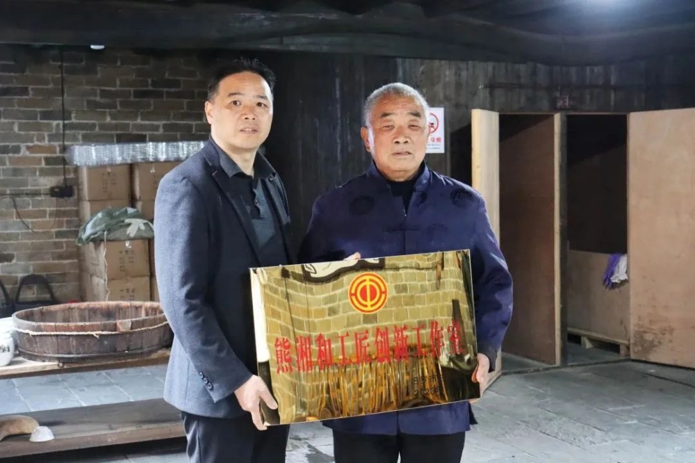 长乐镇甜酒古法酿制非遗传承人熊湘和,数十年如一日,用双手传承祖上工艺,用心保持甜酒古香。湖南省工艺美术大师苏文胜以巧手成功地开发了汨罗江乌木雕刻工艺 。近日,汨罗市人大常委会副主任、汨罗市总工会主席易红,汨罗市总工会相关负责人为以“熊湘和 ”和“苏文胜”名字命名的工匠创新工作室授牌。