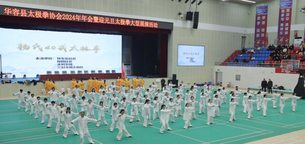 近日,华容县迎元旦太极拳大型展演活动在县职业中专体育馆隆重举行,此次活动由华容县总工会、县教体局联合主办,县太极拳协会、县职业中专具体承办。县委常委、副县长涂娟宣布开演,各乡镇、县直部门、企业工会主席,全县爱好太极拳运动的工会会员和县总工会机关全体工作人员现场观摩。