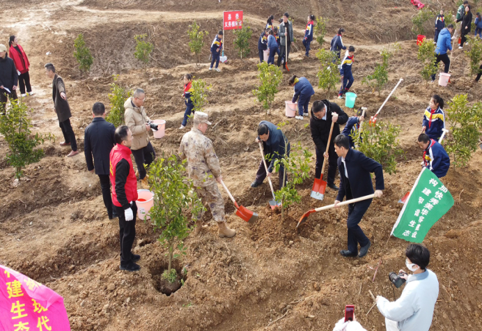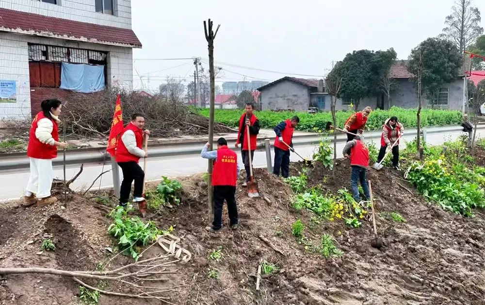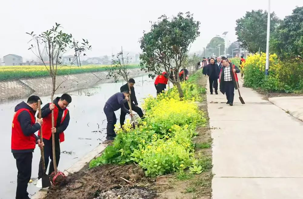 在团洲垸灾后重建点,华容县总工会全体工作人员挥锹铲土、分苗定植,扶苗填坑、提水浇灌……植树现场,大家拿着铁锹、水桶等工具,合力种下一排排优质楠木和桂花树苗,为当地和美乡村集体经济“一村一品”建设示范基地增添新绿。在各乡镇沟港路渠、农户四旁和荒坪隙地,各乡镇基层工会、县直部门工会发动干部职工和志愿者,选购优质苗木,自备锄头铁锹,深入开展“弘扬新时代雷锋精神·植树护绿文明在行动”主题活动,热火朝天鼓干劲,因地制宜植新绿,以实际行动助力乡村振兴。