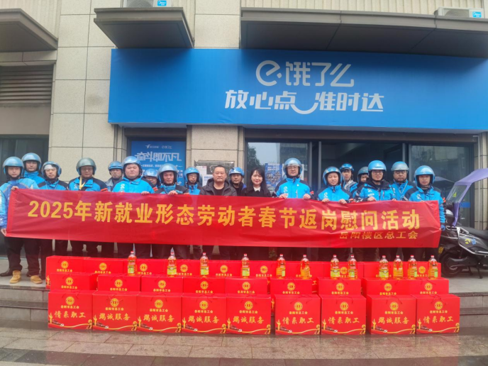 近日,岳阳楼区总工会组织开展2025年新就业形态劳动者春节返岗慰问活动,为他们送上“娘家人”的贴心关怀。