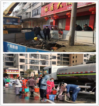(抢修争分夺秒,送水温暖人心——1月29日凌晨,望岳路DN400主供水管突发爆裂,市水务集团抢修人员迅速反应,15分钟赶到爆管现场,勘测情况,关阀止水,控制水势,制定抢修方案,迅速开展抢修作业。时值疫情防控攻坚关键时期,集团高度重视供水应急保障工作,公司领导协同相关部门负责人亲自现场督导抢修工作,共出动抢修车辆3台次,抢修人员10余人,全力抢修保供水。在停水抢修期间,望岳路沿线部分居民生活用水受到影响,为了保障居民正常生活用水,市水务集团迅速调度公司送水车为停水小区送水,并安排专人引导居民整齐有序排队接水。同时,主动协调对接环卫局、街道办等相关单位给沿线小区合理加派送水车,缓解市民用水之急,共派出三台送水车辆为省建五公司、富川鴻景园、华盛佳园、富翔家园等望岳路沿线小区用户送水。经过对漏水处加班加点抢修作业,在下午4点左右完成抢修,恢复正常供水,比预计供水时间提前了7个小时。)